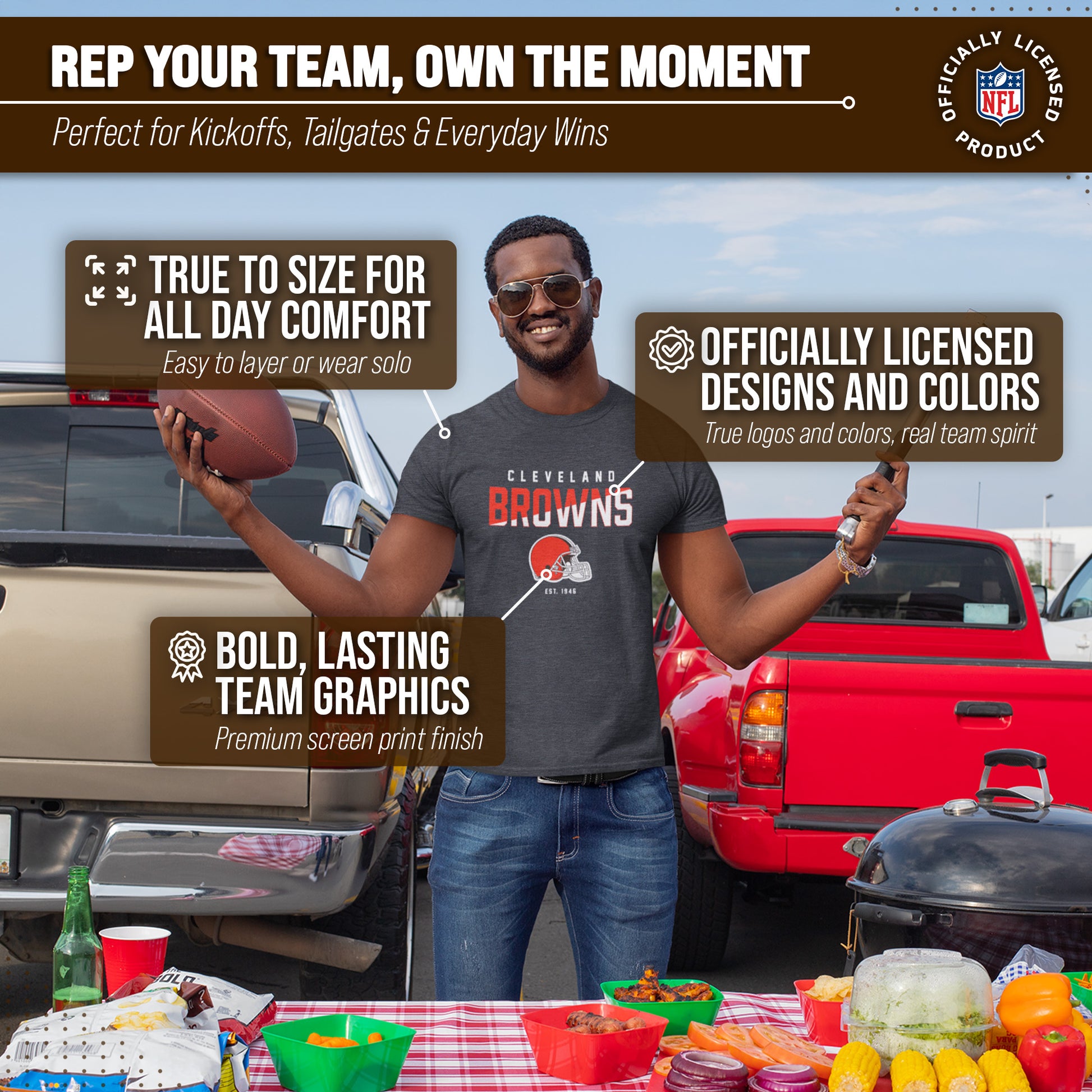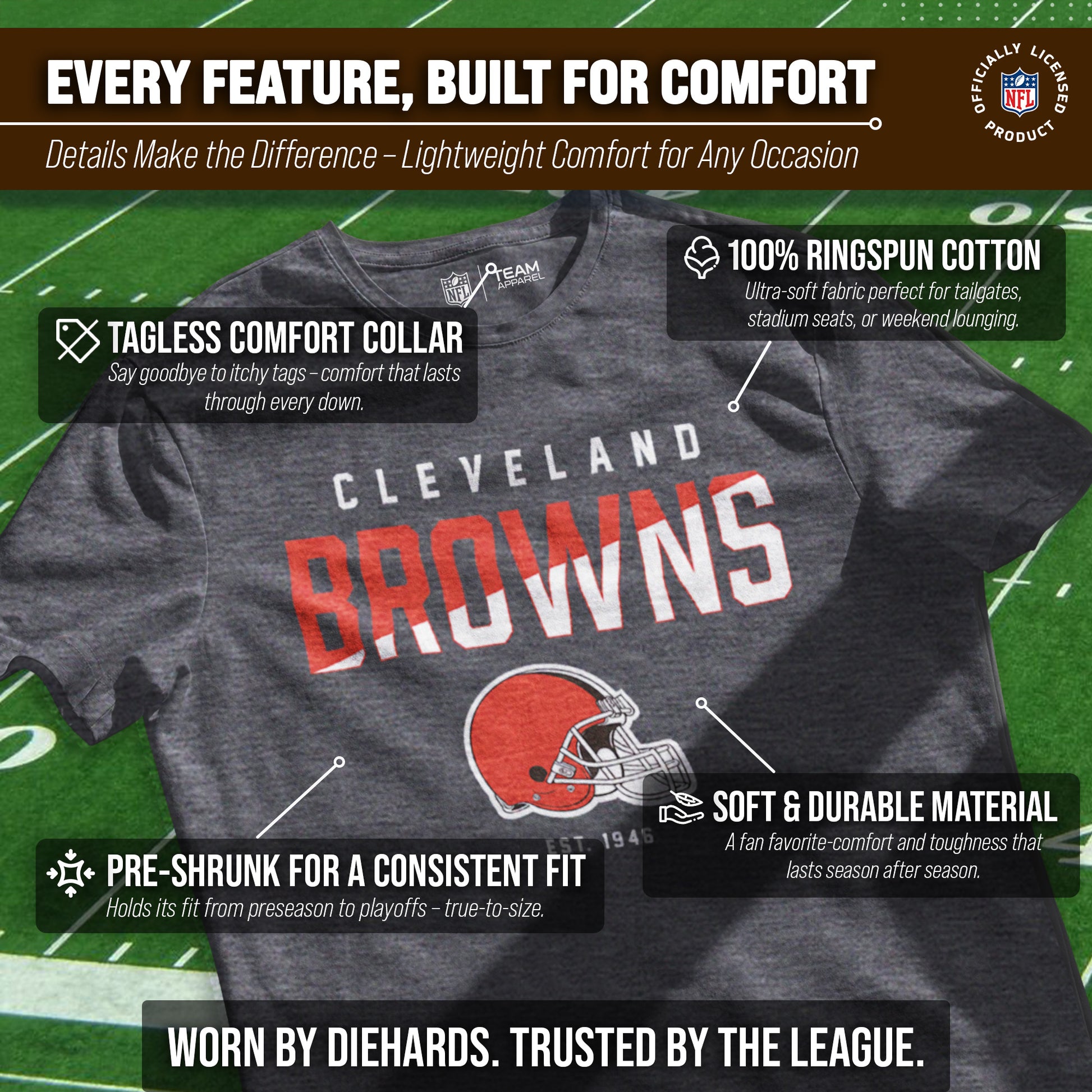 Score with Team Fan Apparel, the ultimate destination for officially licensed NFL apparel for men and women.  We use only the highest quality screen printing techniques to bring you the most comfortable, durable, and stylish clothing possible. Go ahead and show your team pride at the big game or any time! This premium  t-shirt fits both male and female adults and comes in small, medium, large, XL, and XXL. So needless to say, it fits Cleveland Browns fans of all types! Maybe you aren't a Browns fan but you know someone who is? Don't worry! This high-quality t-shirt is soft, lightweight, breathable and a GREAT gift for any birthday, anniversary, Father's Day, Mother's day, you name it! So, if you want to stand out as the #1  fan at the next big game or watch party, you're going to want to be wearing one of these hockey t-shirts.
