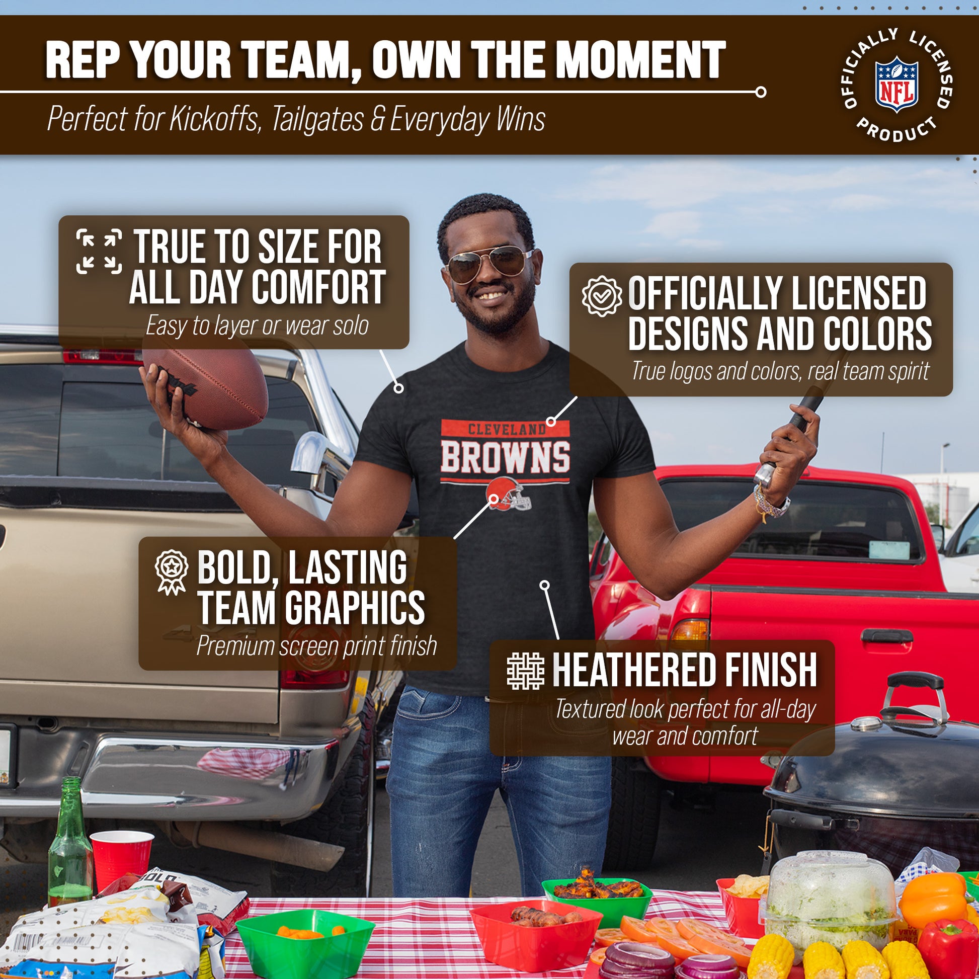 Heather/charcoal wordmark womens and mens Cleveland Browns t shirts are the ultimate light, soft, and comfortable tee. These Cleveland Browns tshirts are the most versatile football apparel. Let us help you celebrate and showcase team pride with our durable and lightweight Cleveland Browns t shirts for men and women. This tee features a quality, screen printed wordmark that will last wear after wear. The official wordmark design gives you the look of a loyal and seasoned sports fan and the unique heather, dual-blended material gives a trendy, distressed look without that heavy printed feel. Made of 50% ringspun cotton and 50% polyester, the dual blend material is extremely soft, smooth and comfortable. These Cleveland Browns shirts for men and women comes without a tag, so you'll never feel annoyed or irritated by those pesky neck tags again!     This tee is essential apparel for any football fan. This classic Cleveland Browns t shirt will stand out and is perfect for the gameday tailgate, hanging out with friends, or wearing to the gym. The unisex fit and design makes it ideal for both men and women! Quality [team short] t shirt makes the best birthday, Christmas, or graduation gifts for [team short] fans; Our Cleveland Browns shirts run true to size. All quality logos and colors are officially licensed and are of the highest quality. Show off your team pride with this official short sleeve Cleveland Browns t shirt!