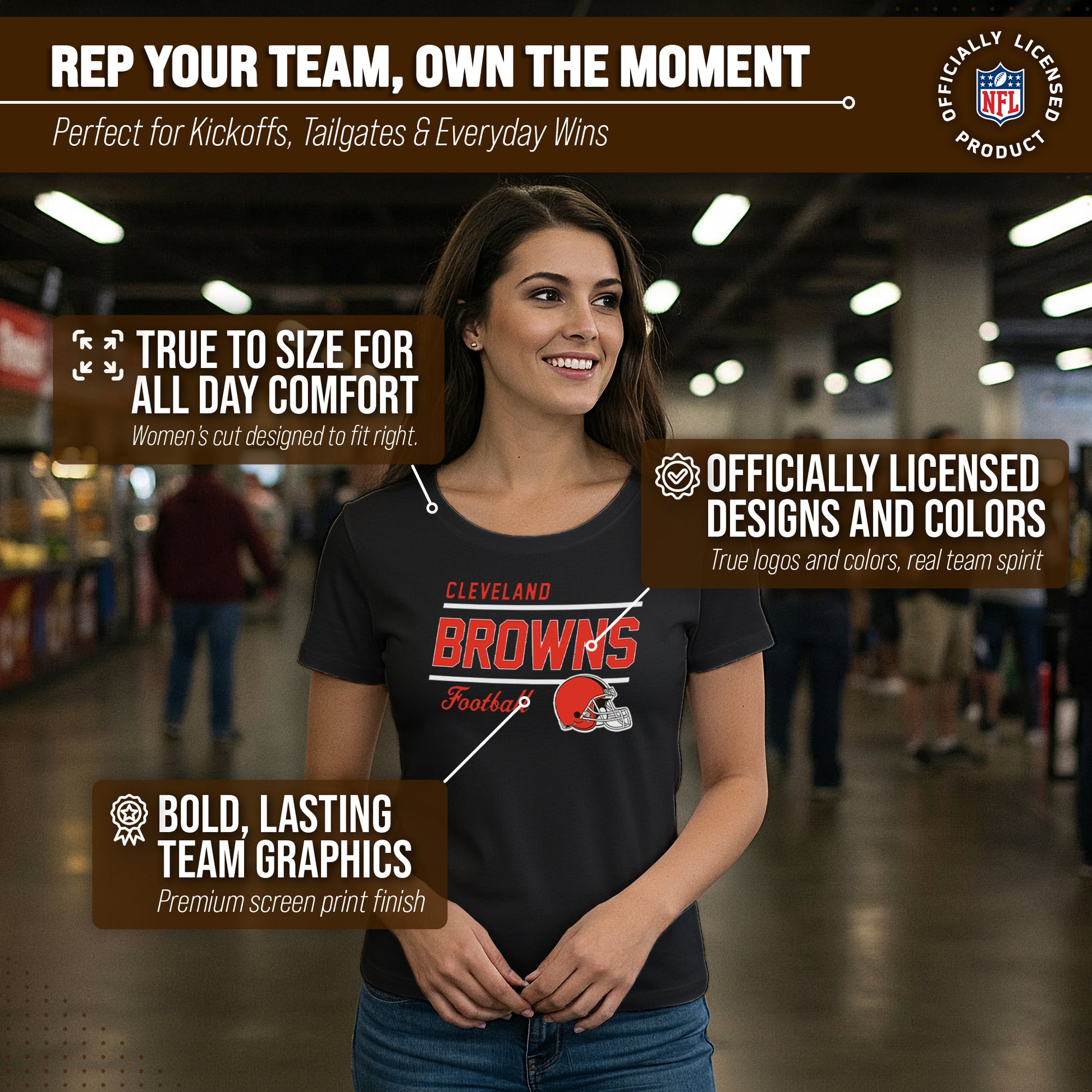 Our officially licensed Browns shirt is super comfortable, runs true to size, and is great for showing off your Cleveland Browns pride.     The high-quality thermal printed logo will look fresh after years of wear, making it a great alternative to your womens Cleveland Browns jersey. Our Gameday t-shirt has a relaxed yet contoured fit for a casual yet feminine look. The short sleeve shirt is perfect with shorts for tailgates in warmer months, or with jeans or leggings and a sweater during colder months. Available in plus sizes, our Browns shirts for women plus size or straight size will make anyone feel comfortable enough to show off their love for the Cleveland Browns.          If you're looking to give team t shirts for women as a gifts, our Gameday tshirt is the Cleveland shirt women will love. Officially licensed to ensure no counterfeit designs or colors, our Cleveland Browns womens shirts are great for superfans. 100% ringspun and made from a blend of cotton and polyester], designed to keep you cool and comfortable all year long. The womens gameday football t shirt will definitely become one of your favorite tops.