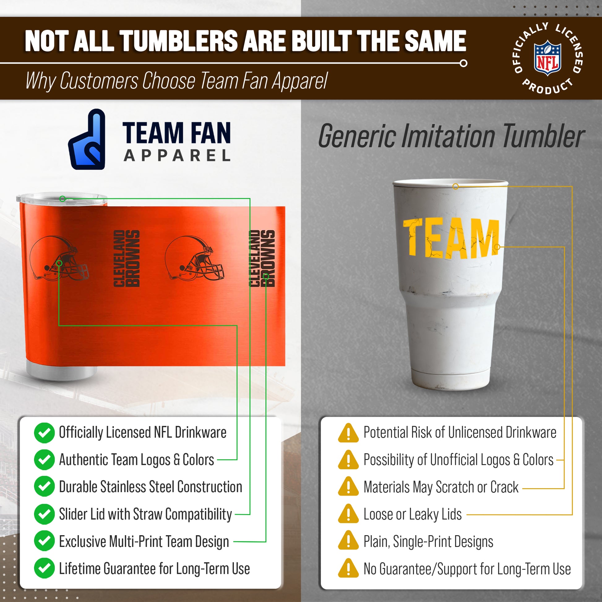 Get ready to cheer on the Cleveland Browns with the NFL 20oz Gameday Stainless Steel Tumbler!  This versatile Browns tumbler is perfect for both hot and cold drinks, making it a must-have for game days, road trips, or just everyday use. The sleek stainless steel design features your team's logo, making it a great gift for any Cleveland Browns fan - men and women alike! With a slider lid and slightly tapered silhouette, you can easily sip on your coffee, water or cocktails while showing off your Cleveland Browns team spirit.  But this tumbler isn't just stylish - it's also functional. The insulated design keeps your drinks at the perfect temperature, whether you're tailgating in the chilly fall weather or enjoying a refreshing drink in the summer sun. And with a generous capacity of 20oz, you'll have plenty to share with friends and family.  So grab your NFL 20oz Gameday Stainless Steel Cleveland Browns Tumbler and show off your love for the game wherever you go!