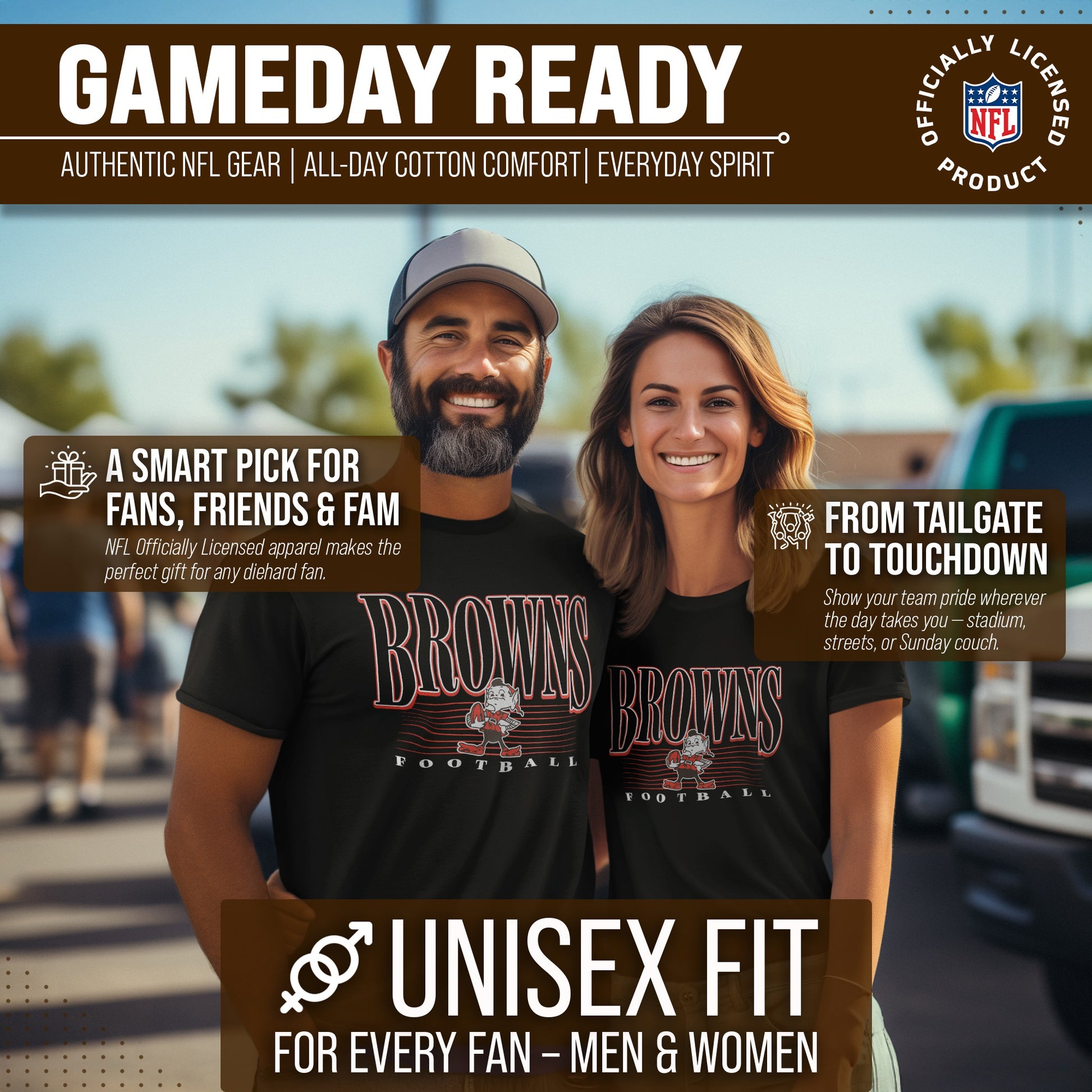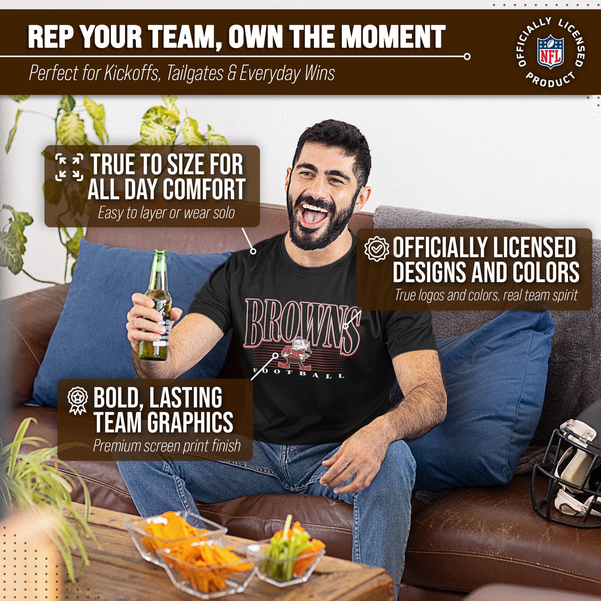 Show off your team spirit in style with our Team Fan Apparel Cleveland Browns NFL Overtime Blueprint Tag-Less T-Shirt!  Made for both men and women, this unisex t-shirt is the perfect addition to any football fan's wardrobe. With its soft and comfortable cotton blend fabric, you'll love wearing it to games or just lounging at home. The tag-less design ensures maximum comfort without any annoying tags scratching at your neck.  Featuring a colorful logo with outlined text of your favorite team, this shirt will make you stand out from the crowd and show off your die-hard fandom. It comes in multiple sizes, so you can choose the one that fits best & represents your team spirit.  Whether you're cheering on your Browns at the stadium or watching from home, our NFL Overtime Blueprint Tag-Less T-Shirt is a must-have for all fans! So grab yours today and support your team in comfort and style. Go team!