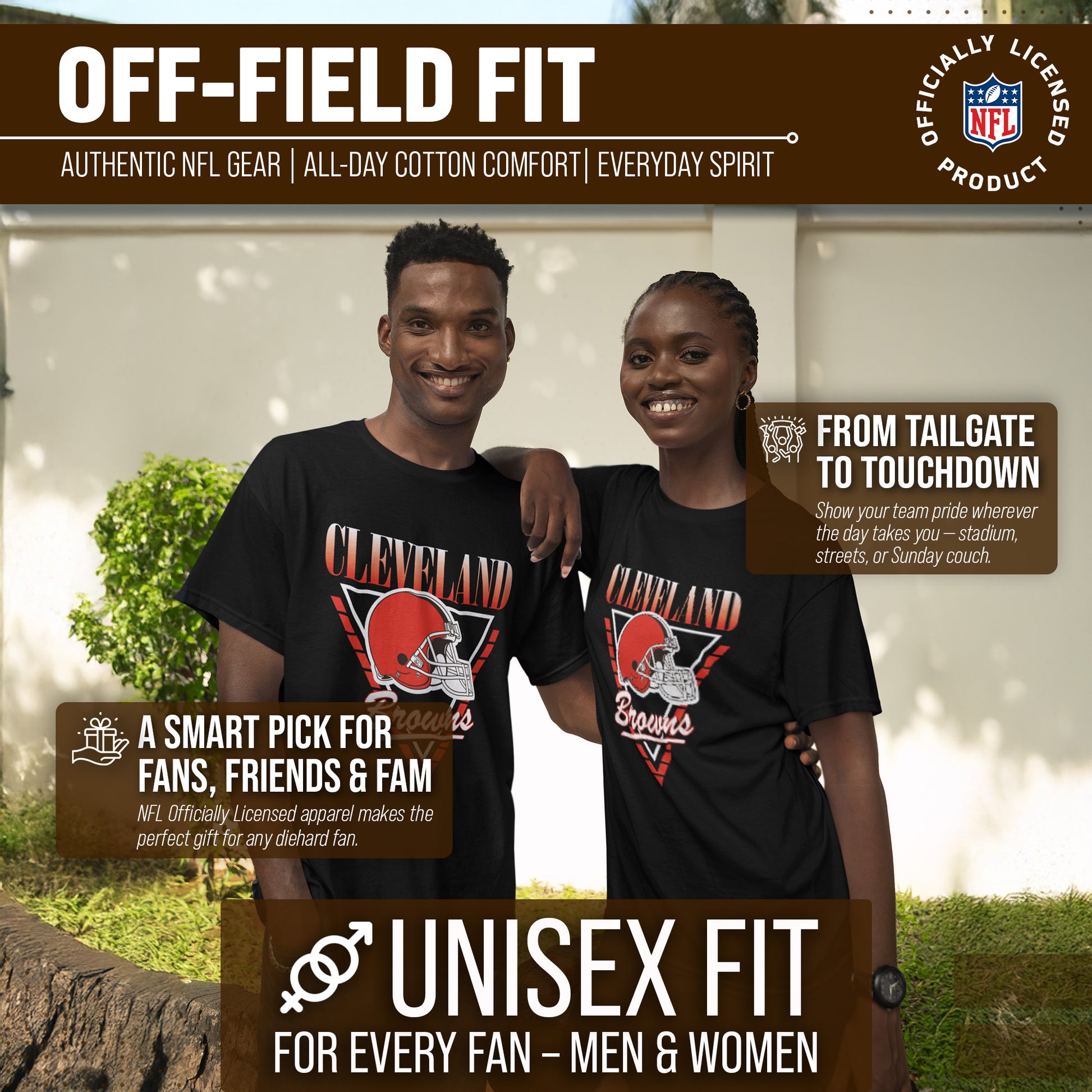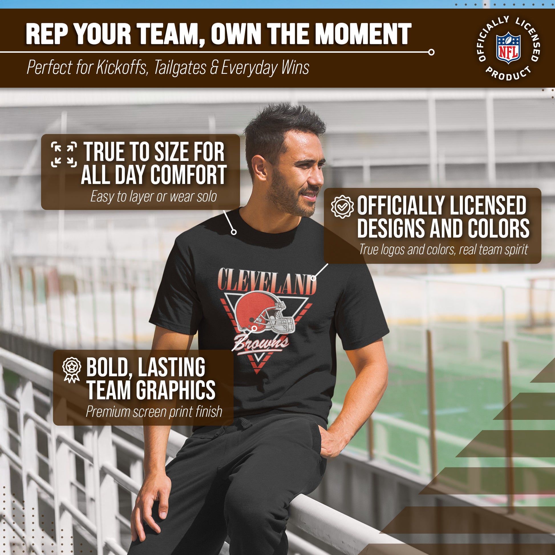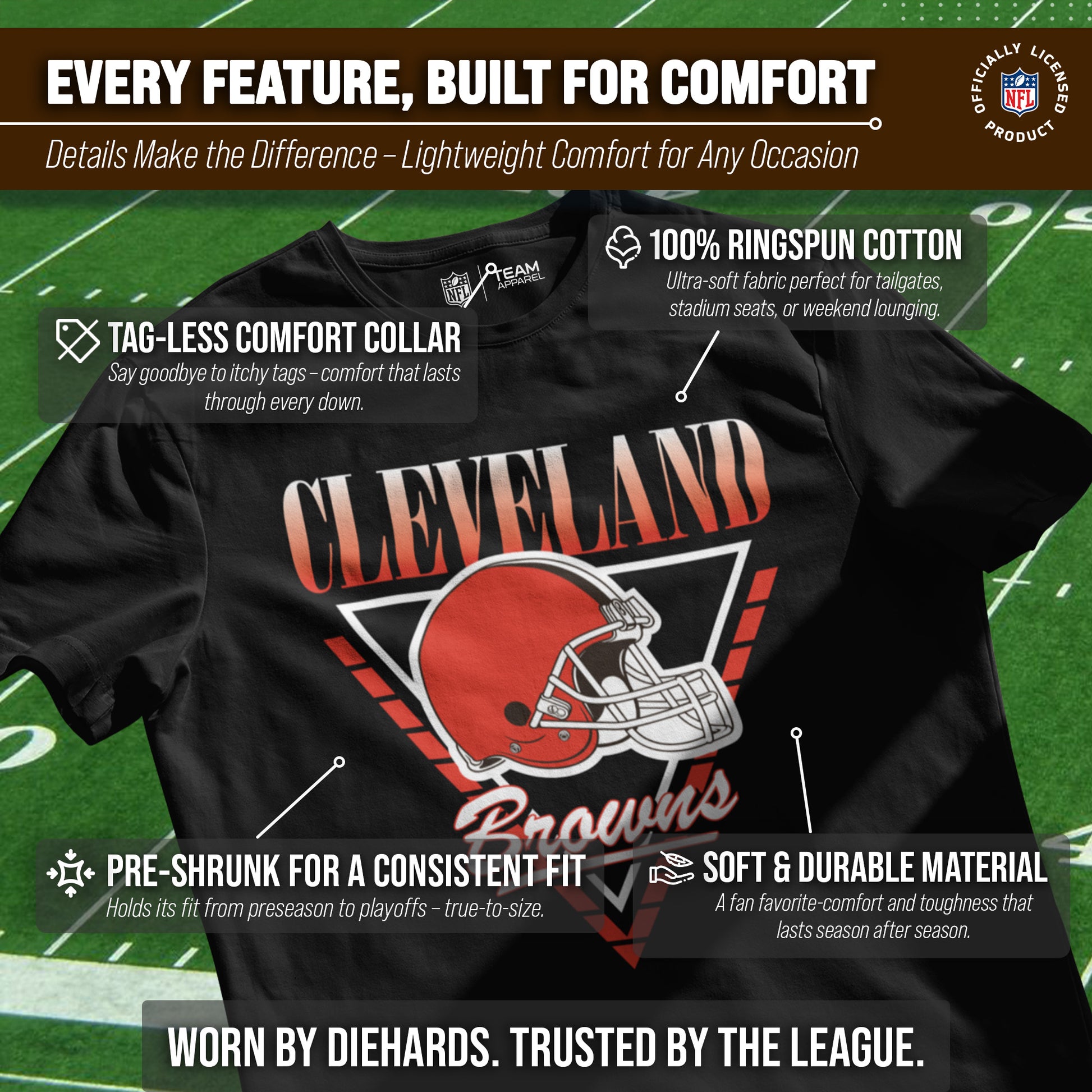 Show off Your Team Spirit with the Comfortable and Stylish Cleveland Browns NFL Adult Retro Triangle T-Shirt!  Support your favorite football team in style and comfort with this officially licensed Browns t-shirt. Made from a soft and breathable ring-spun cotton, this shirt is perfect for game day or everyday wear. The tag-less design eliminates any annoying tags that can cause discomfort, making it even more comfortable to wear.  Featuring a retro triangle design, this unisex t-shirt is suitable for both men and women. The short-sleeved style is perfect for warmer weather or layering under a jacket during colder months. Whether you're cheering on your team at the stadium or watching the game from home, this t-shirt is the ultimate fan apparel.  So go ahead and show off your Browns team pride with the NFL Adult Retro Triangle T-Shirt - because nothing beats comfortable, stylish, and officially licensed fan gear!