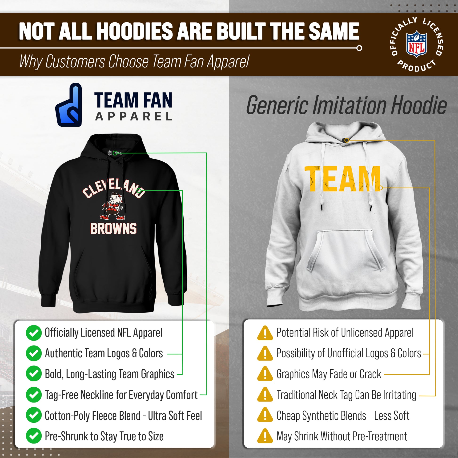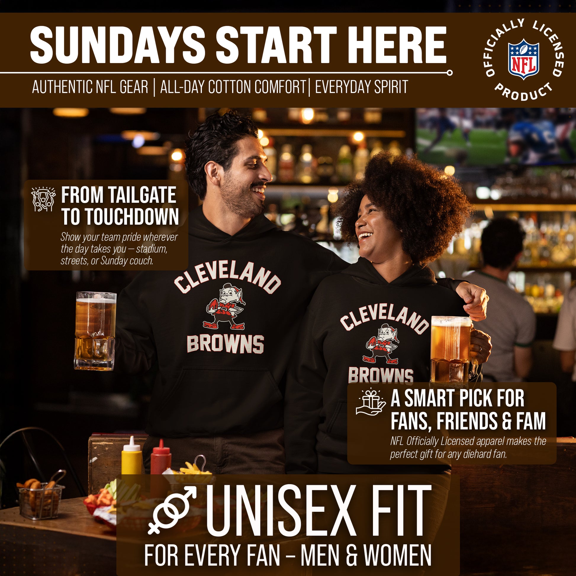 Get Ready to Show Your Team Spirit in the Most Comfortable Way Possible with Team Fan Apparel's Cleveland Browns NFL Retro Gameday Hooded Sweatshirt!  Made with ultra-soft fleece material, this hooded sweatshirt is perfect for game days or just lounging around the house. With its unique design and performance material, you can proudly represent your favorite team wherever you go.   Not only is it officially licensed by the NFL, but it also comes in adult unisex sizing so both men and women can rock their team pride. The retro gameday design adds a vintage touch to your gameday attire, making you stand out from the crowd.  So why settle for a basic sweatshirt when you can show off your style and support your team at the same time? Grab your NFL Retro Gameday Hooded Sweatshirt from Team Fan Apparel today and get ready to cheer on your Browns in ultimate comfort!