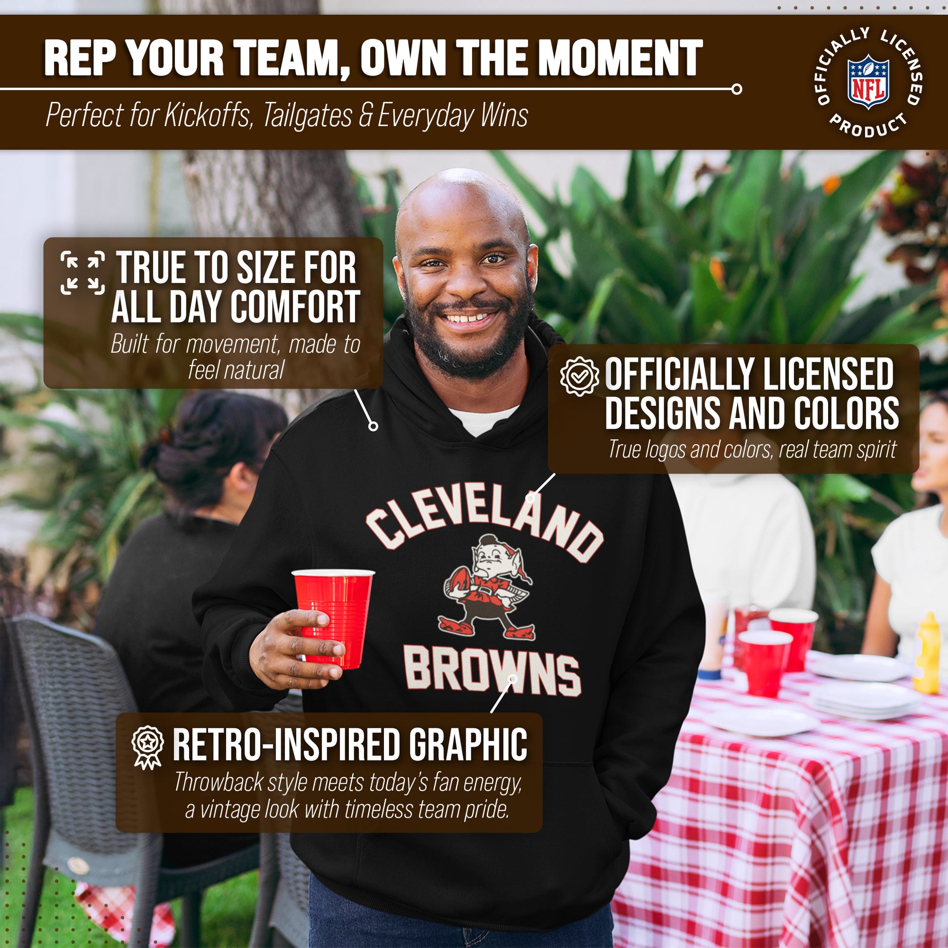 Cleveland Browns NFL Adult Unisex Retro Gameday Ultra Soft Fleece Hooded Sweatshirt - Black