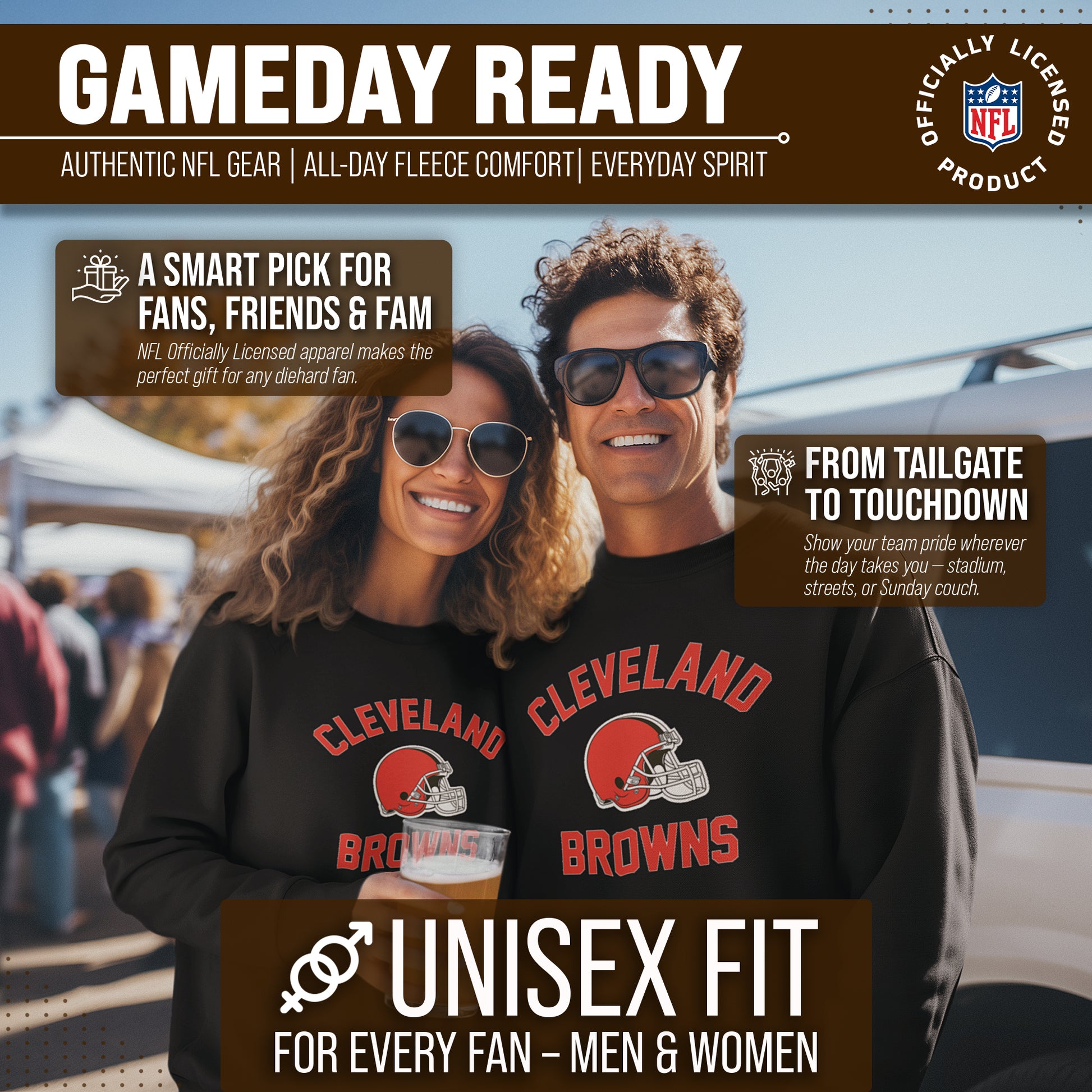 This adult Gameday Cleveland Browns football crewneck is the ideal sweatshirt to wear on gameday. Our crewneck sweatshirt is comfortable, runs true to size, and is great for showing team pride all year long! This is the perfect Cleveland sweatshirt for both men and women. Our Cleveland Browns team colored crewneck sweatshirts are the perfect fan apparel for tailgates and sports games. The lightweight crewneck pullover is made of air jet yarn for a softer feel and reduced pilling, which means your crewneck sweatshirt will look new for years to come. You don't have to worry about the Cleveland graphics fading on your crewneck, either. The pullovers are made with thermal printed graphics that are high definition, true team color, and resist fading!    This Cleveland sweatshirt is ideal for warm or cold weather, which means you can wear it not only all football season, but all year long! Our pro football crewneck sweatshirt features 1x1 rib with spandex for enhanced stretch and recovery. This Cleveland crewneck sweatshirt has double-needle stitching at shoulders, armholes, neck, waistband, and cuffs. Our comfortable crewneck pullover is made from a cotton poly fleece blend.    This tagless sweatshirt ensures the most comfortable fit for men and women. The classic fit of this sweatshirt makes this Cleveland Browns crewneck that perfect pullover for Cleveland men and women fans. Our pro Cleveland Browns pullover sweatshirts for men and women make the best Cleveland gift. Cleveland Browns apparel is the perfect birthday gift for any football fan. This Cleveland Browns football crewneck sweatshirt is perfect for tailgating, stadium fun, or watching the game at home.