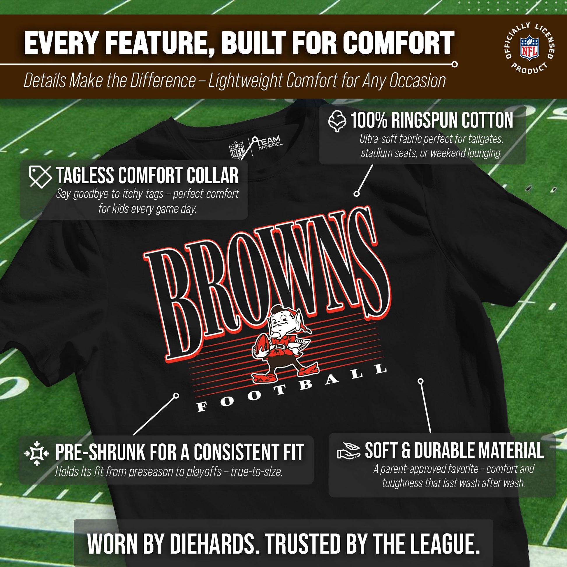 Cleveland Browns NFL Youth Overtime Blueprint Football T-Shirt Unisex Tag Free Comfortable - Black