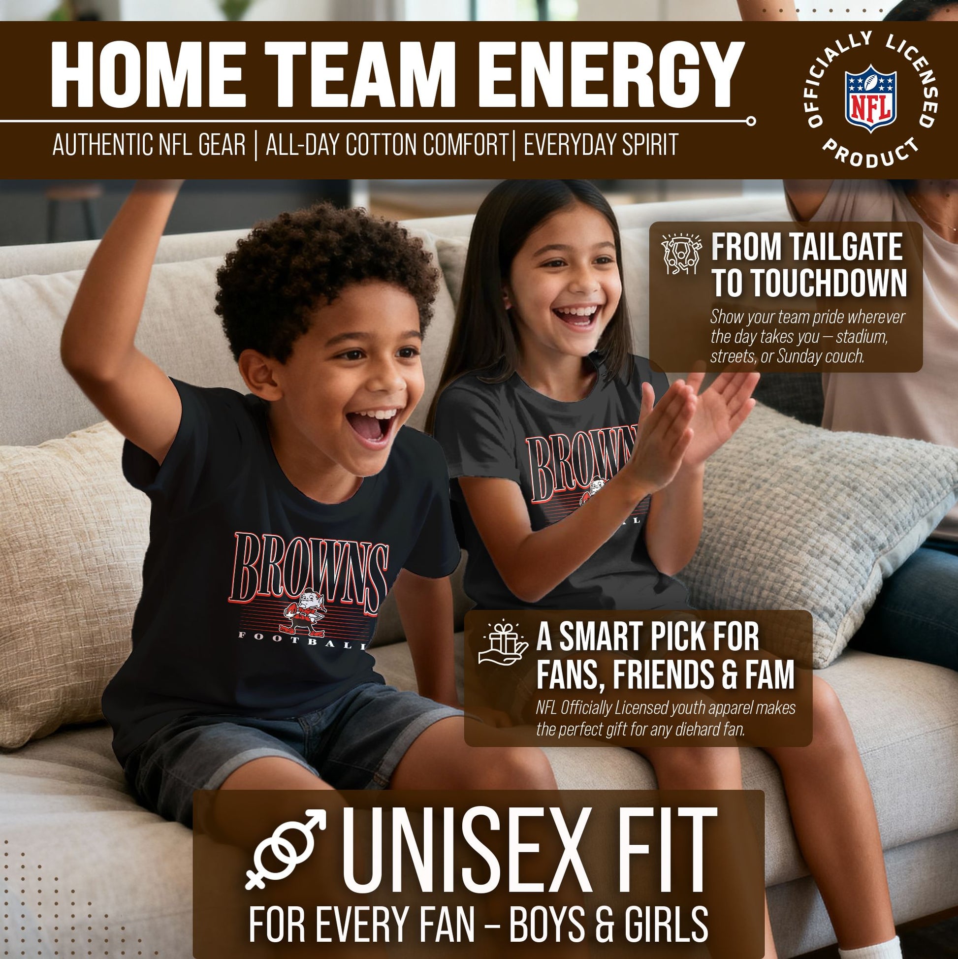 Hey there, young sports fan! Get ready to show off your team spirit with this awesome Browns Youth Overtime Blueprint Football T-Shirt. This unisex shirt is perfect for both boys and girls who love their favorite NFL team. And the best part? It's officially licensed by the league, so you know you're getting top-quality gear. Not only is this shirt stylish with its unique outlined design, but it's also super comfortable to wear. The lightweight and soft fabric will keep you feeling cool and cozy all day long. Plus, it's tag-free for added comfort - no more annoying tags scratching at your neck! Available in a range of youth sizes to fit kids of all ages, this t-shirt is the perfect addition to any fan's wardrobe. So whether you're cheering on your team from the stands or just hanging out with friends, make sure you're representing in style with this vintage Cleveland Browns NFL t-shirt. Order yours today and get ready to root for your team in the coolest gear around!