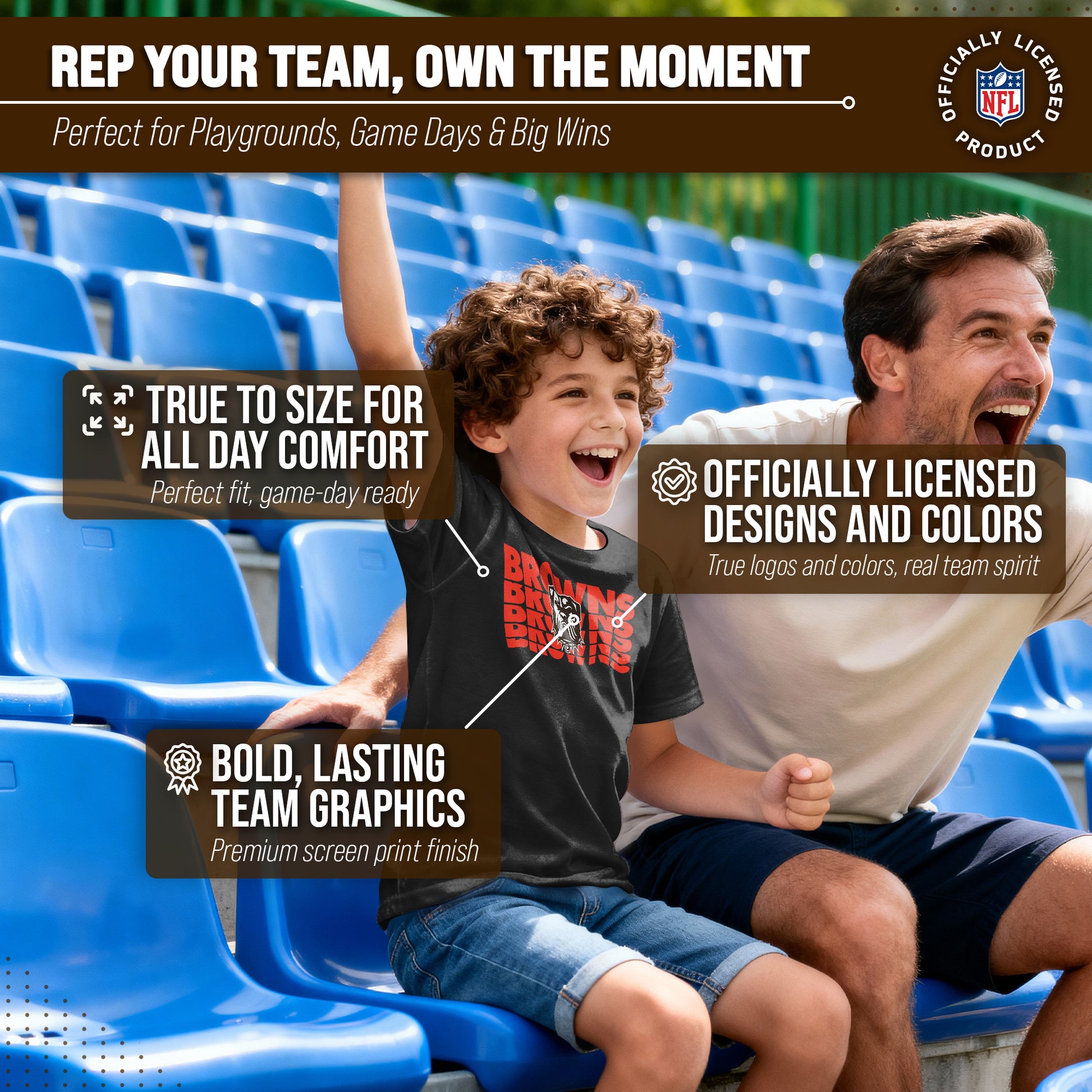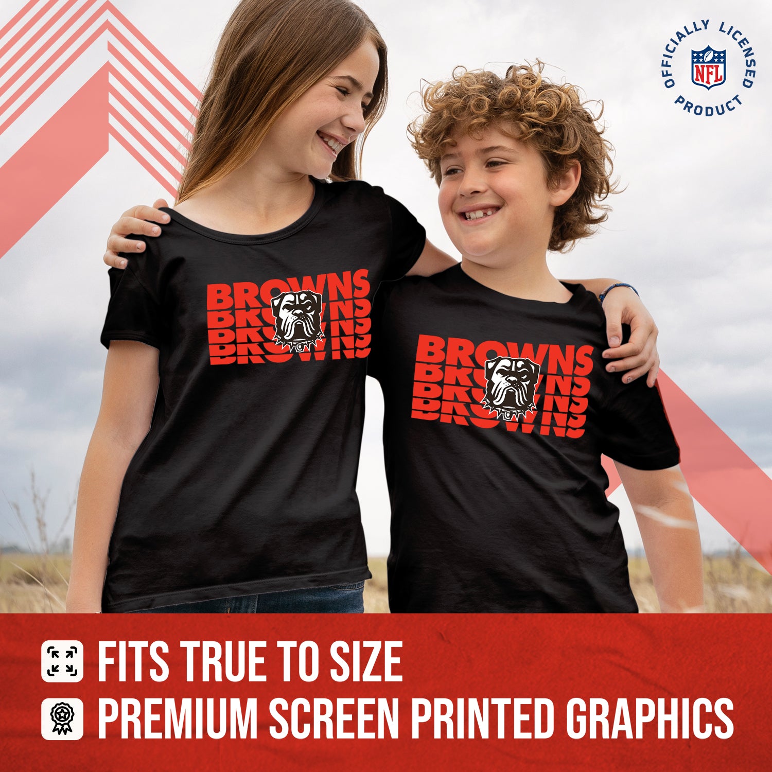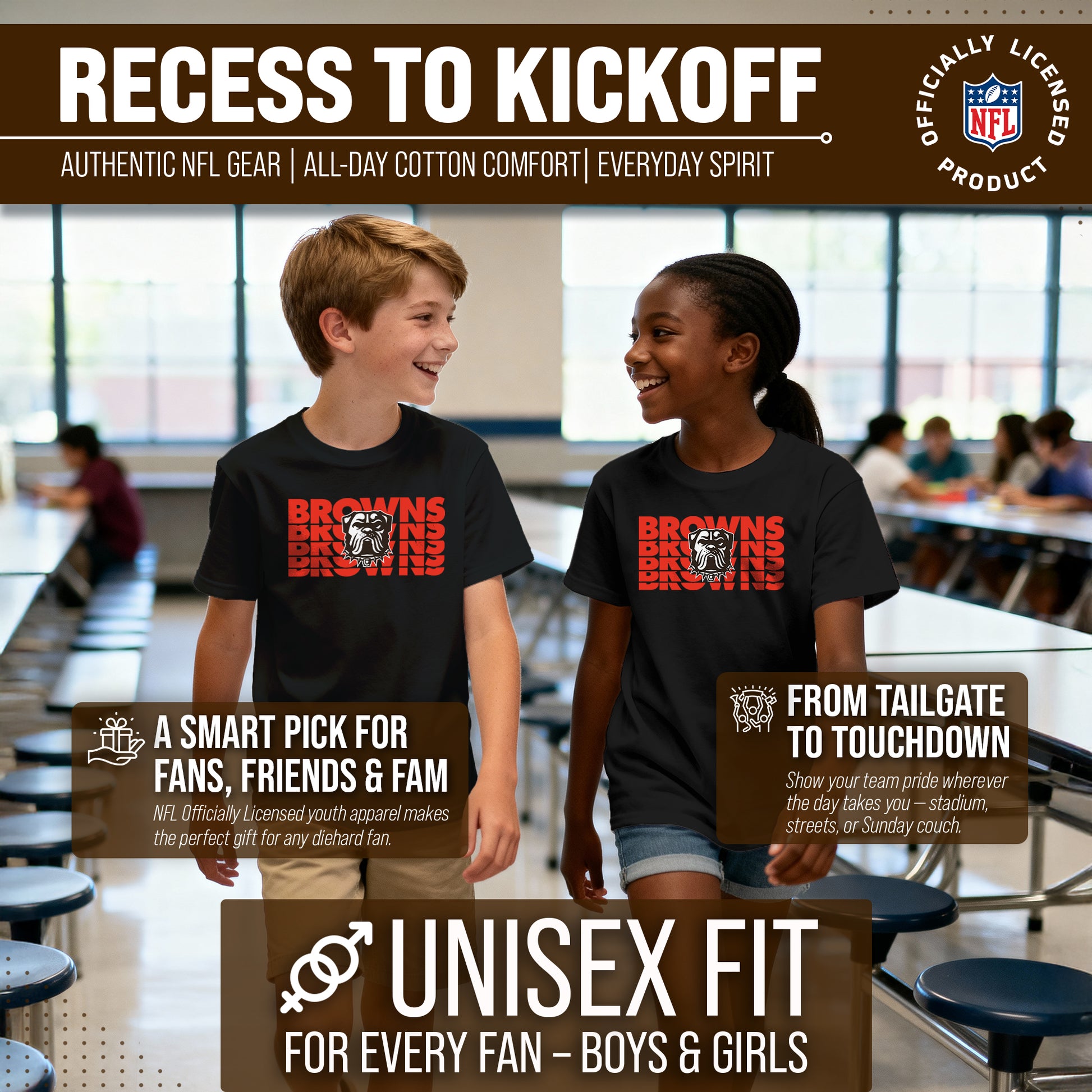 Cleveland Browns NFL Youth Repeating Logo Football T-Shirt Unisex Tag Free Comfortable - Black