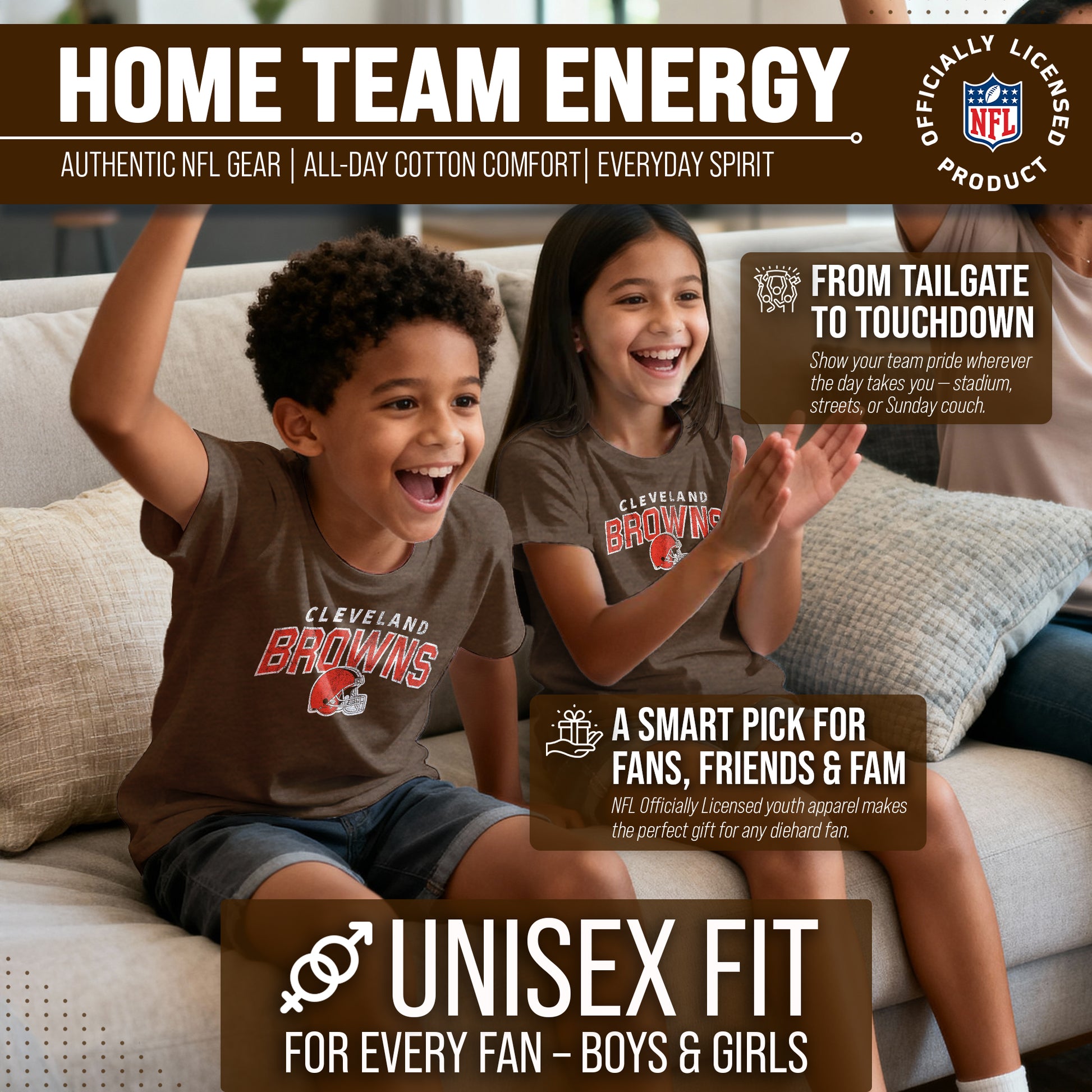 Cleveland Browns NFL Youth Starting Fresh Tee- Pro Football Heather T-Shirt For Boys & Girls - Brown