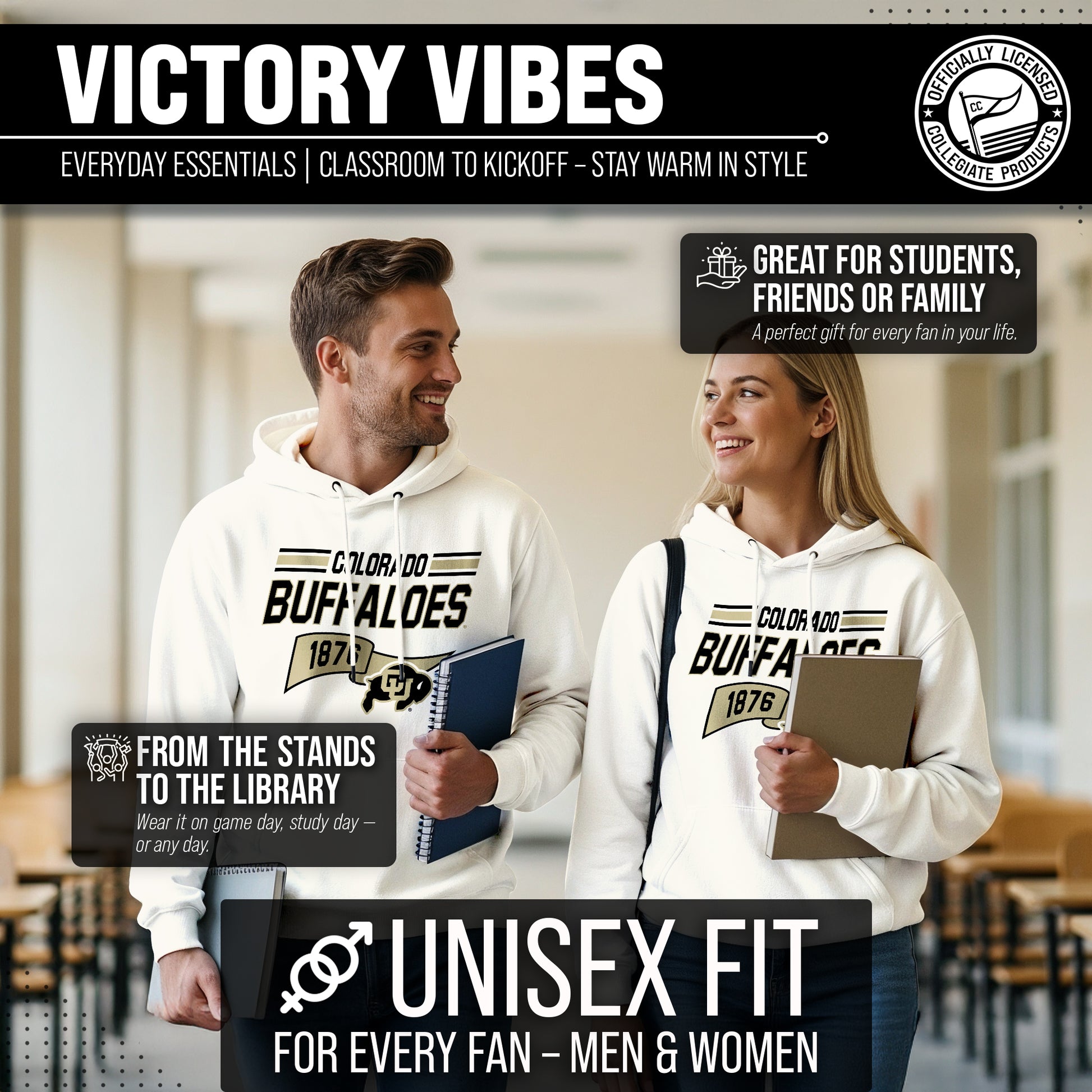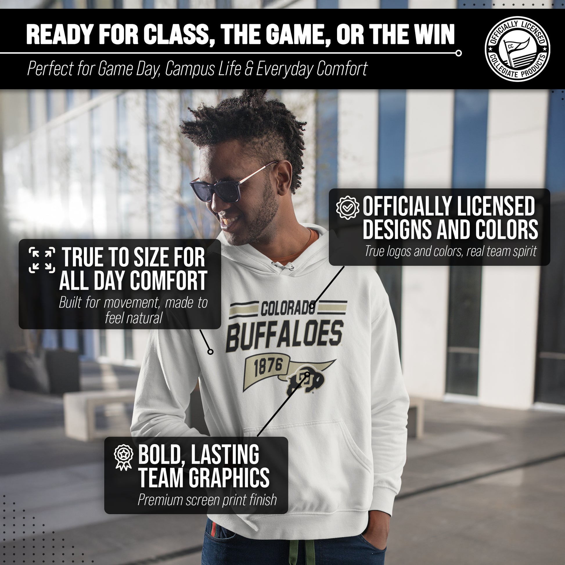 Colorado Buffaloes NCAA Adult Unisex Varsity Club Pennant Hooded Fleece Sweatshirt - Off White