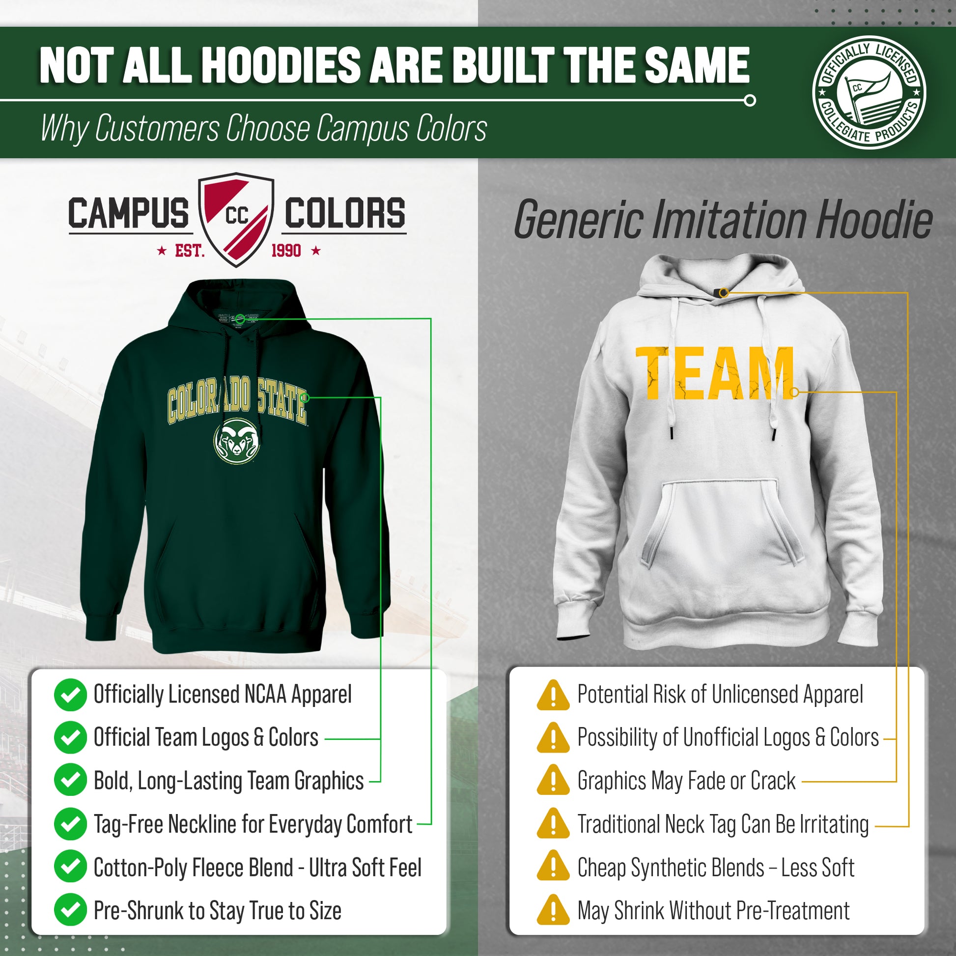 Score with Campus Colors, the ultimate destination for officially licensed college apparel for men and women. Design and printed in the USA, we use only the highest quality screen printing techniques to bring you the most comfortable, durable, and stylish clothing possible. Go ahead and show your team pride at the big game or any time! This premium-quality Gameday hoodie is super comfy, fits both male and female adults, and comes in small, medium, large, XL, and XXL. So needless to say, it fits Colorado State Rams fans of all types! Maybe you aren't a Colorado State fan but you know someone who is? Don't worry! This high-quality sweatshirt is soft, lightweight, breathable and a GREAT gift for any birthday, anniversary, Father's Day, Mother's day, you name it! So, if you want to stand out as the #1 Rams fan at the next big tailgate party, homecoming parade, or watch party, you're going to want to be wearing one of these Gameday sweatshirts.