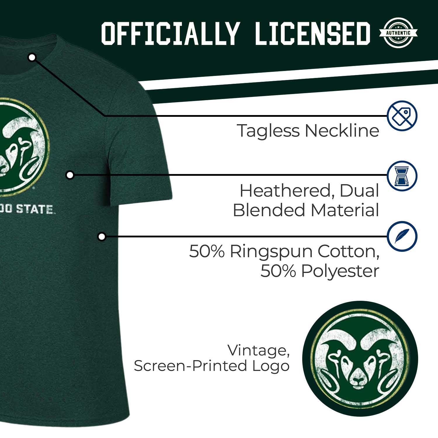 Support your Rams through another successful season while sporting this must-have shirt! Your dedication will be on full display when you wear the Colorado State Rams NCAA Adult MVP Heathered Logo T-Shirt! This heathered t-shirt features official team colors as well as your favorite team name and logo! The screen printed graphics are displayed in a vintage style that gives you the look of a loyal and seasoned fan. Made from a dual blend of ringspun cotton and polyester, this super soft shirt will have you staying comfortable all day long! Wear it at the next tailgate or big game, or even while you watch your team win from home! Perfect for yourself or that next birthday, Christmas, or graduation gift you need to find! Never let your Rams fandom be questioned again, get this shirt today!