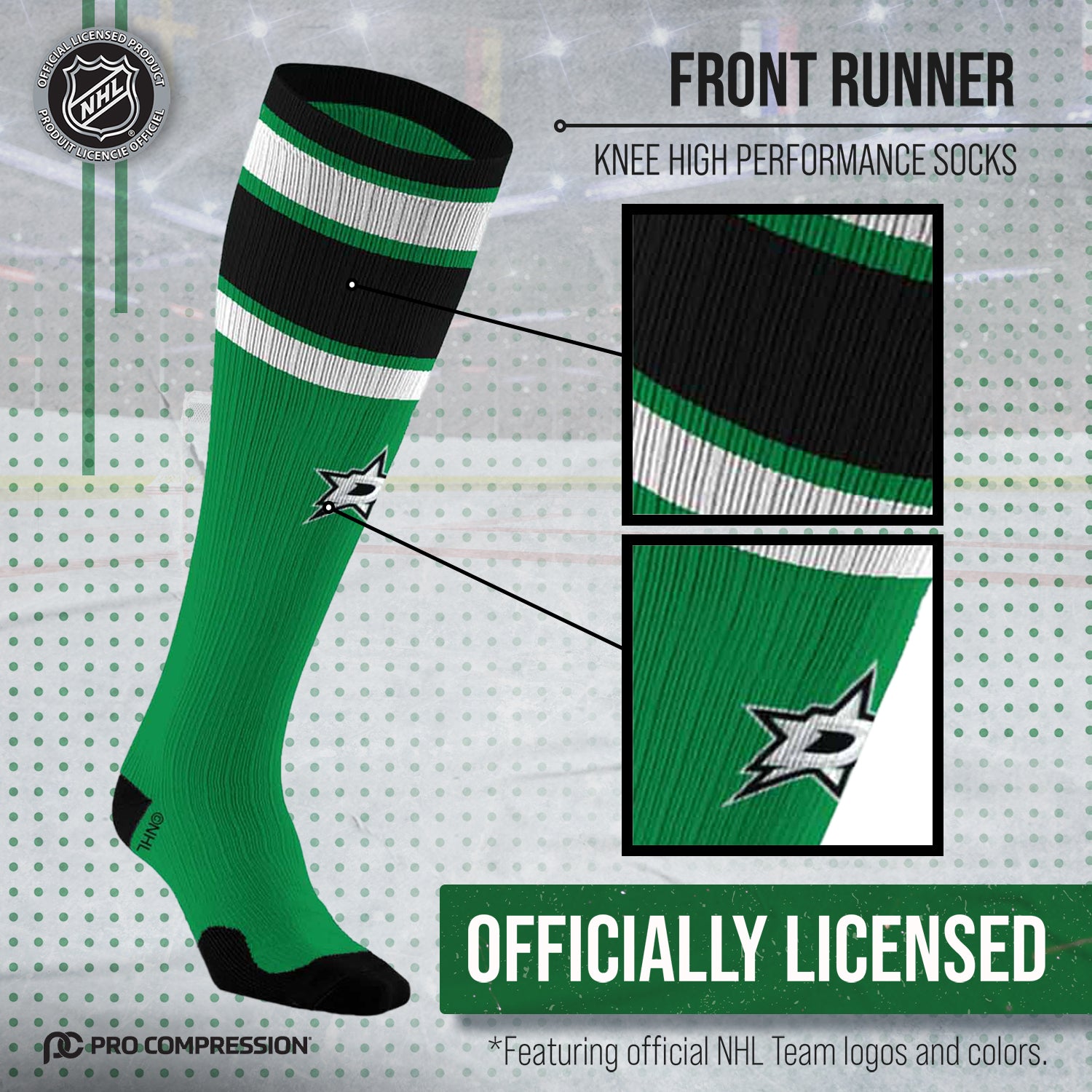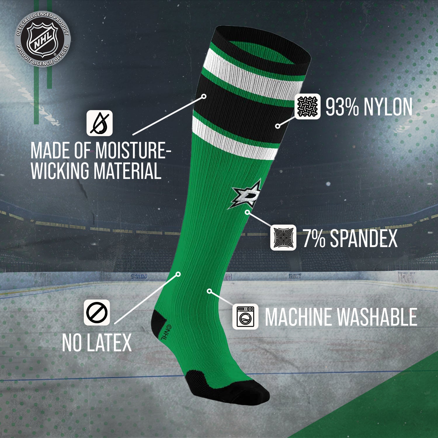 Dallas Stars NHL Adult Knee High-Performance Socks - Green