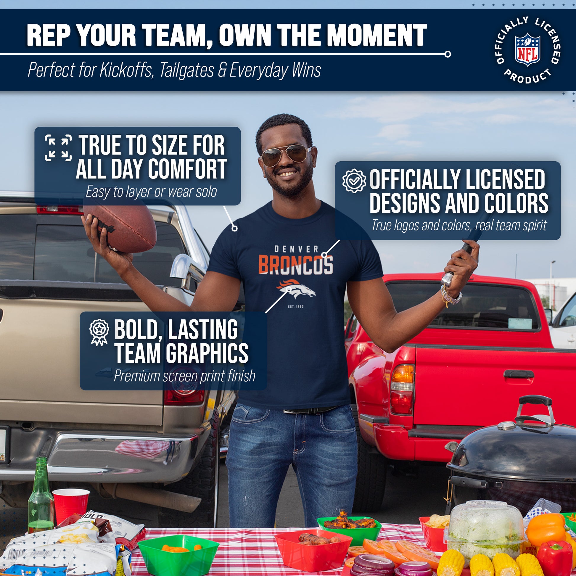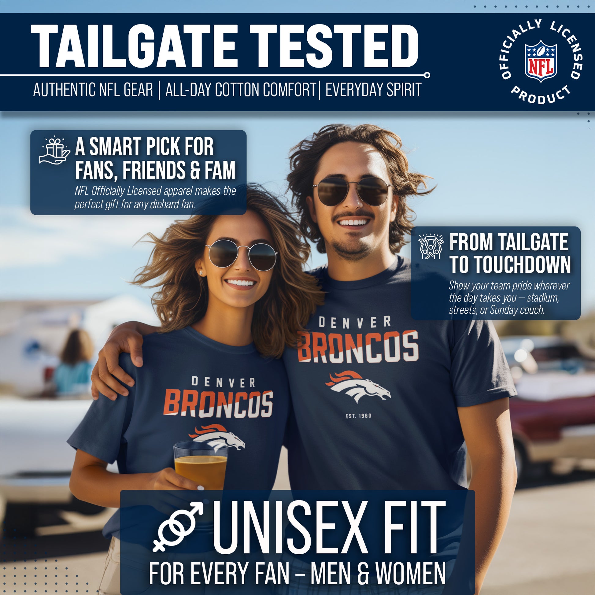 Score with Team Fan Apparel, the ultimate destination for officially licensed NFL apparel for men and women. We use only the highest quality screen printing techniques to bring you the most comfortable, durable, and stylish clothing possible. Go ahead and show your team pride at the big game or any time! This premium t-shirt fits both male and female adults and comes in small, medium, large, XL, and XXL. So needless to say, it fits Denver Broncos fans of all types! Maybe you aren't a Broncos fan but you know someone who is? Don't worry! This high-quality t-shirt is soft, lightweight, breathable and a GREAT gift for any birthday, anniversary, Father's Day, Mother's day, you name it! So, if you want to stand out as the #1 fan at the next big game or watch party, you're going to want to be wearing one of these hockey t-shirts.