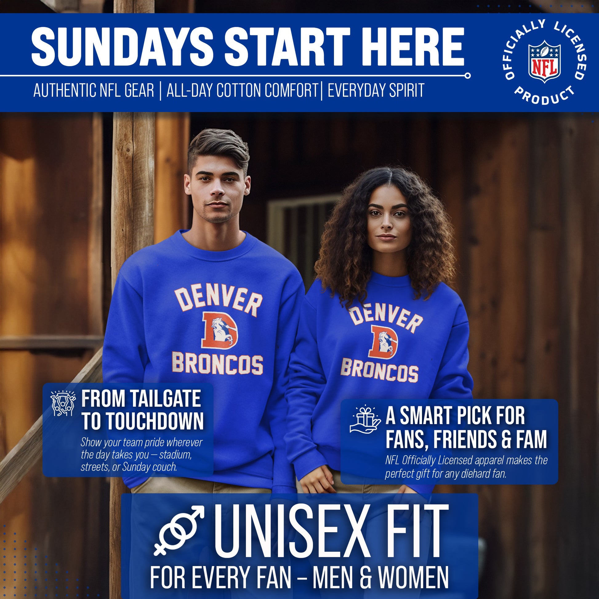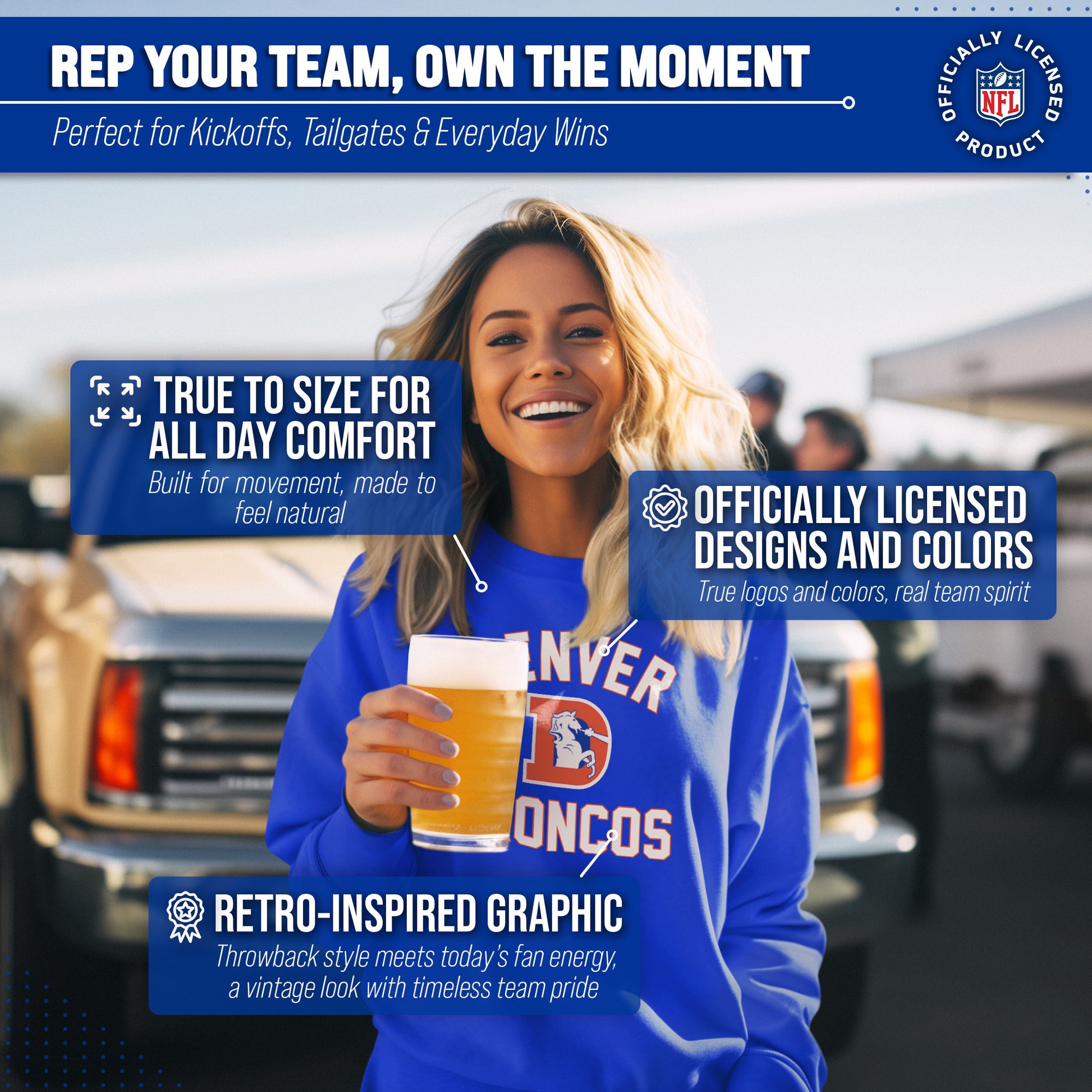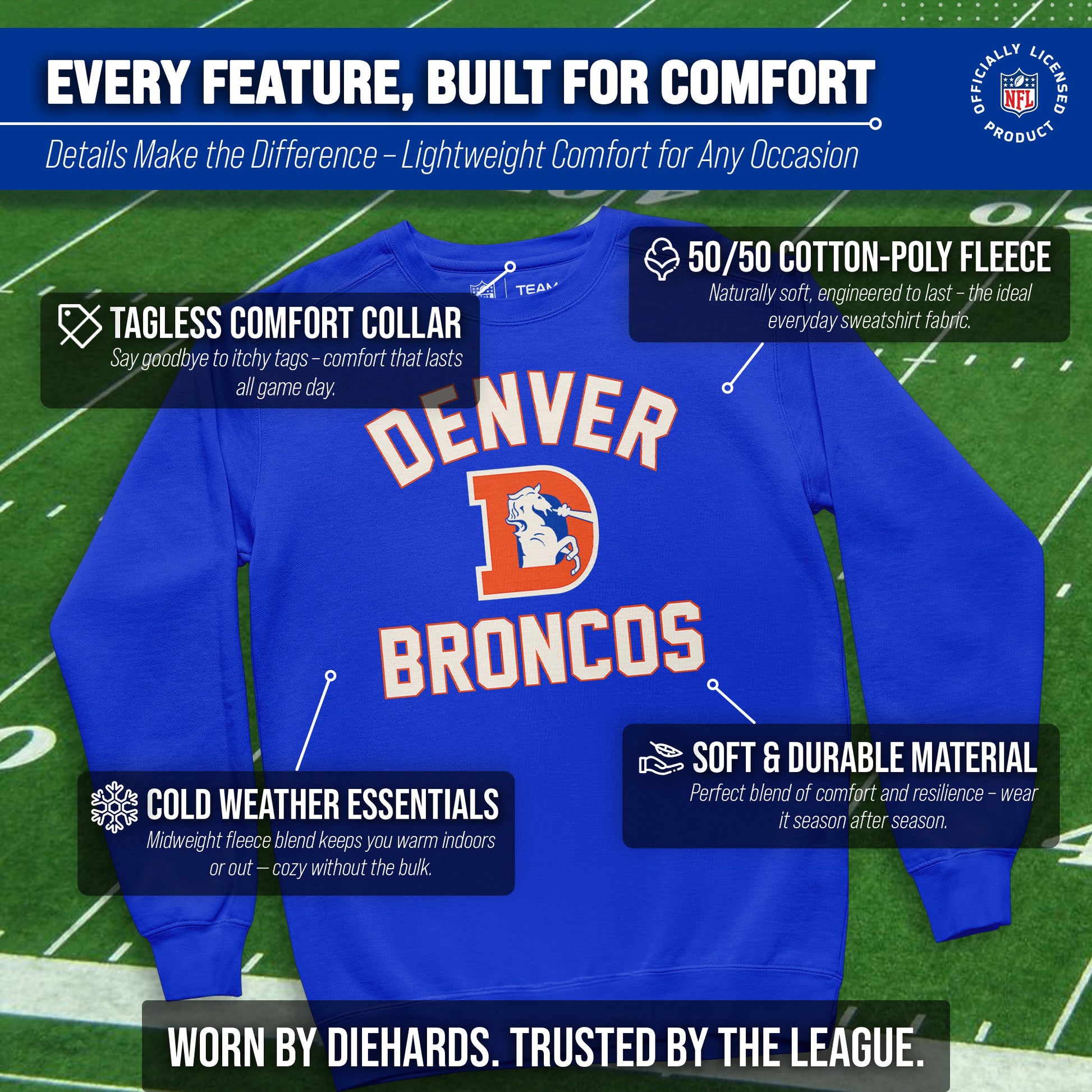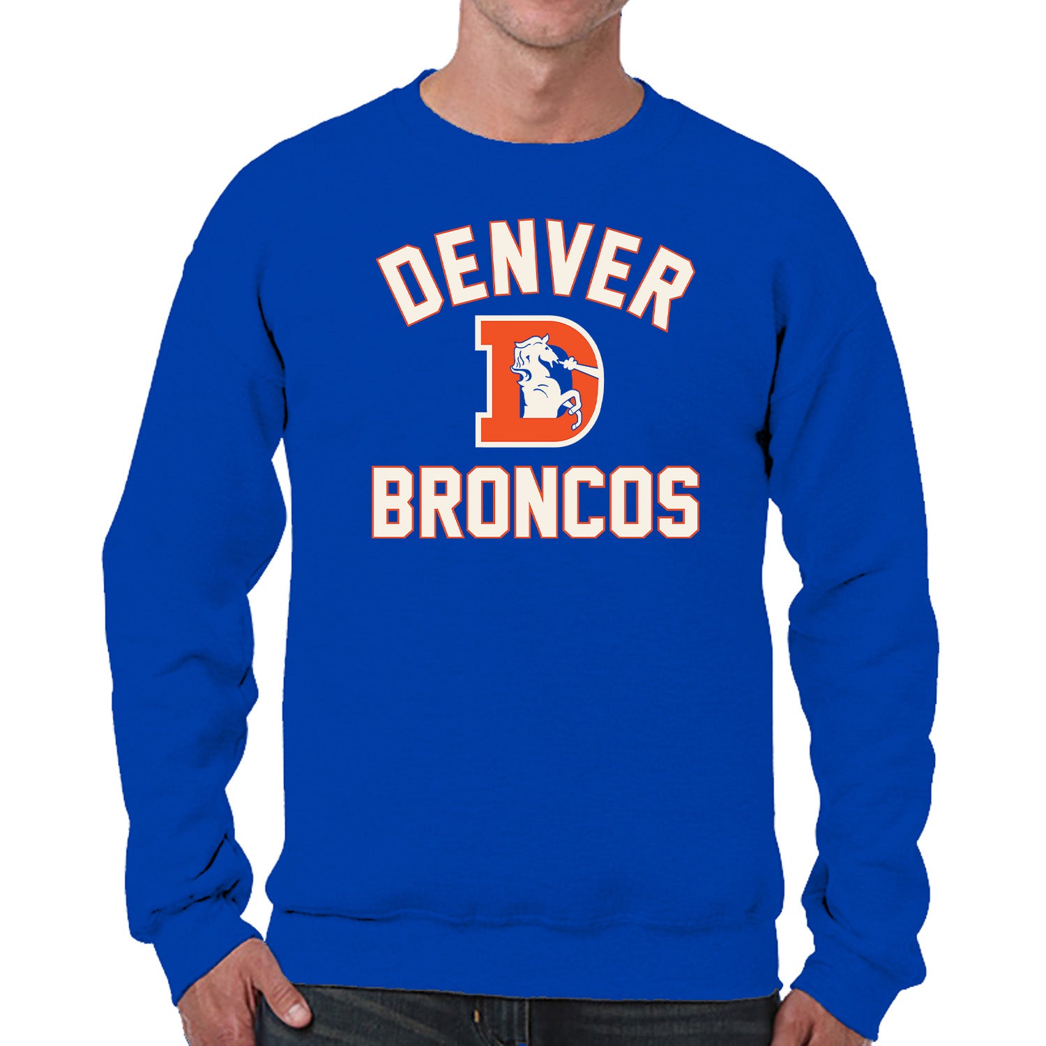 Denver Broncos NFL Adult Unisex Retro Gameday Ultra Soft Fleece Crewneck Sweatshirt - Royal
