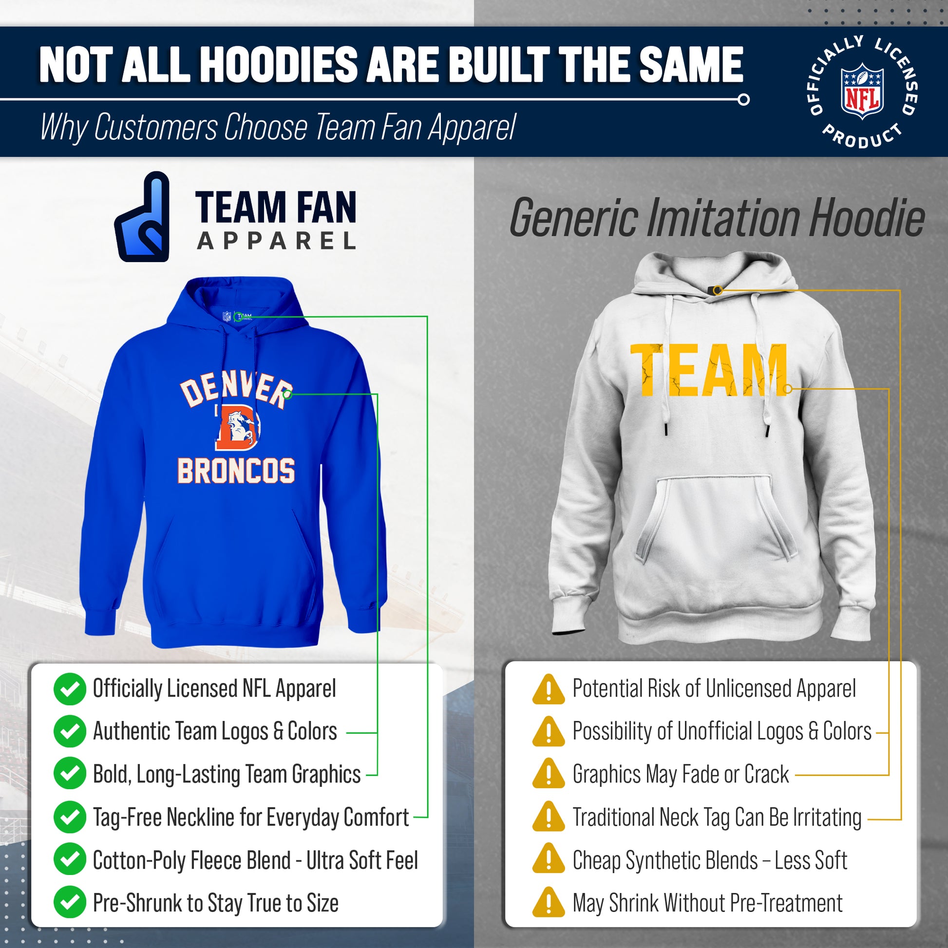 Get Ready to Show Your Team Spirit in the Most Comfortable Way Possible with Team Fan Apparel's Denver Broncos NFL Retro Gameday Hooded Sweatshirt! Made with ultra-soft fleece material, this hooded sweatshirt is perfect for game days or just lounging around the house. With its unique design and performance material, you can proudly represent your favorite team wherever you go. Not only is it officially licensed by the NFL, but it also comes in adult unisex sizing so both men and women can rock their team pride. The retro gameday design adds a vintage touch to your gameday attire, making you stand out from the crowd. So why settle for a basic sweatshirt when you can show off your style and support your team at the same time? Grab your NFL Retro Gameday Hooded Sweatshirt from Team Fan Apparel today and get ready to cheer on your Broncos in ultimate comfort!