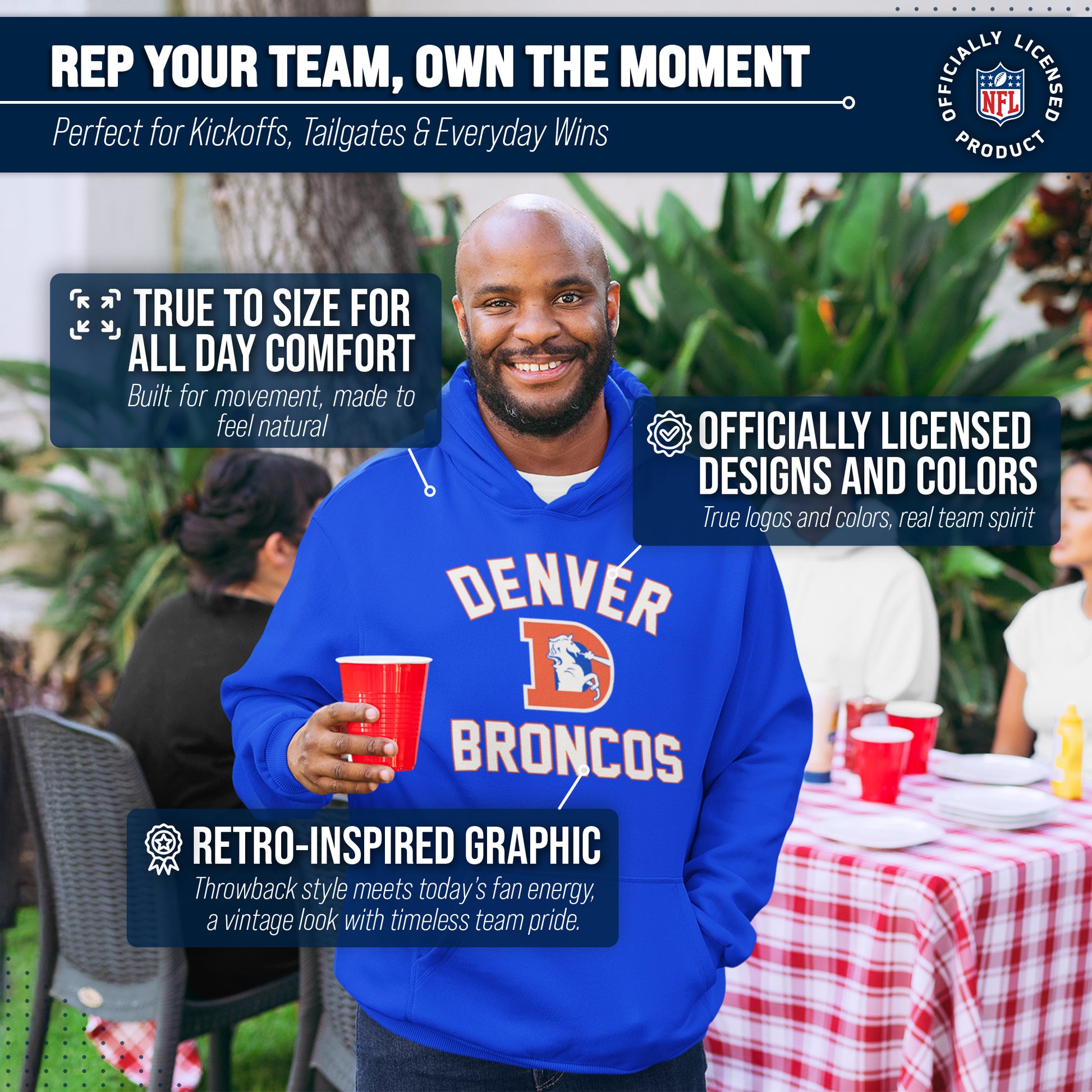 Denver Broncos NFL Adult Unisex Retro Gameday Ultra Soft Fleece Hooded Sweatshirt - Royal