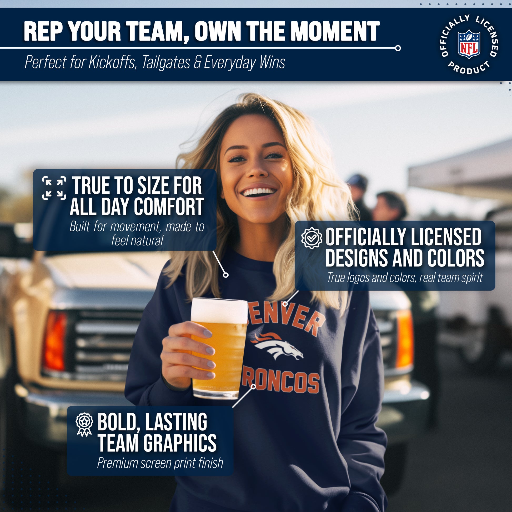 Denver Broncos NFL Gameday Adult Crewneck Sweatshirt - Navy