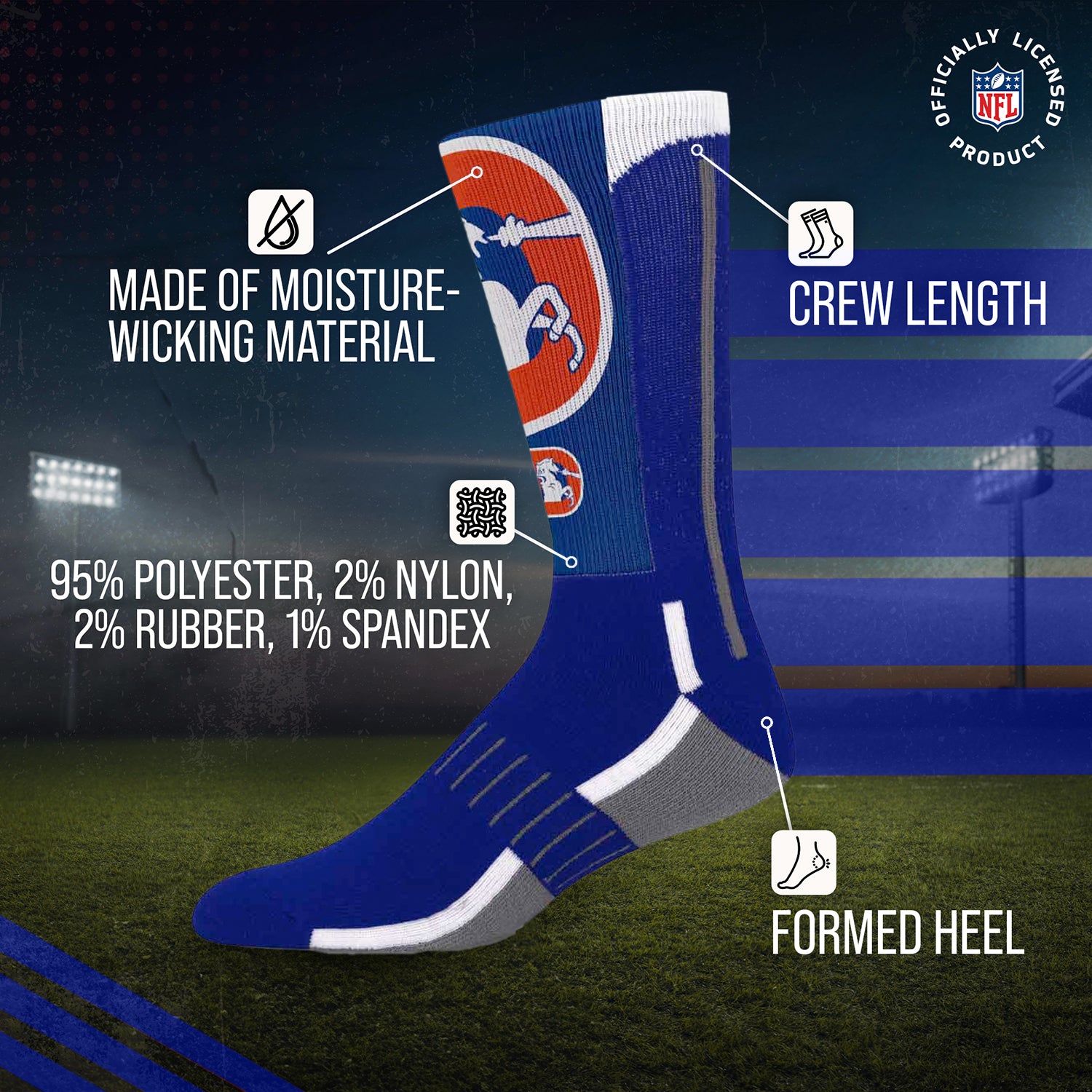 Denver Broncos NFL V Curve Socks - Royal