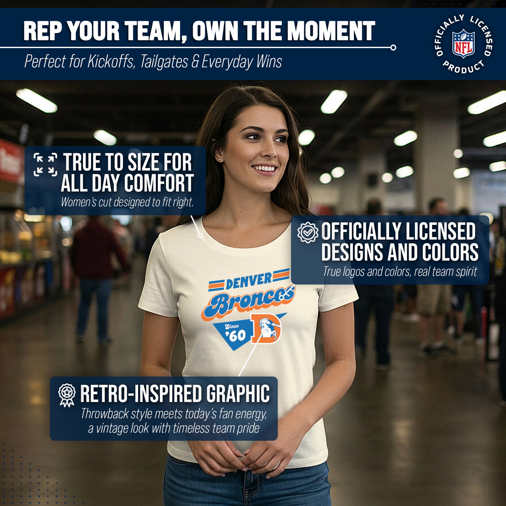 Denver Broncos NFL Womens Vintage Charm Tag-Less Soft T-Shirt - Birch