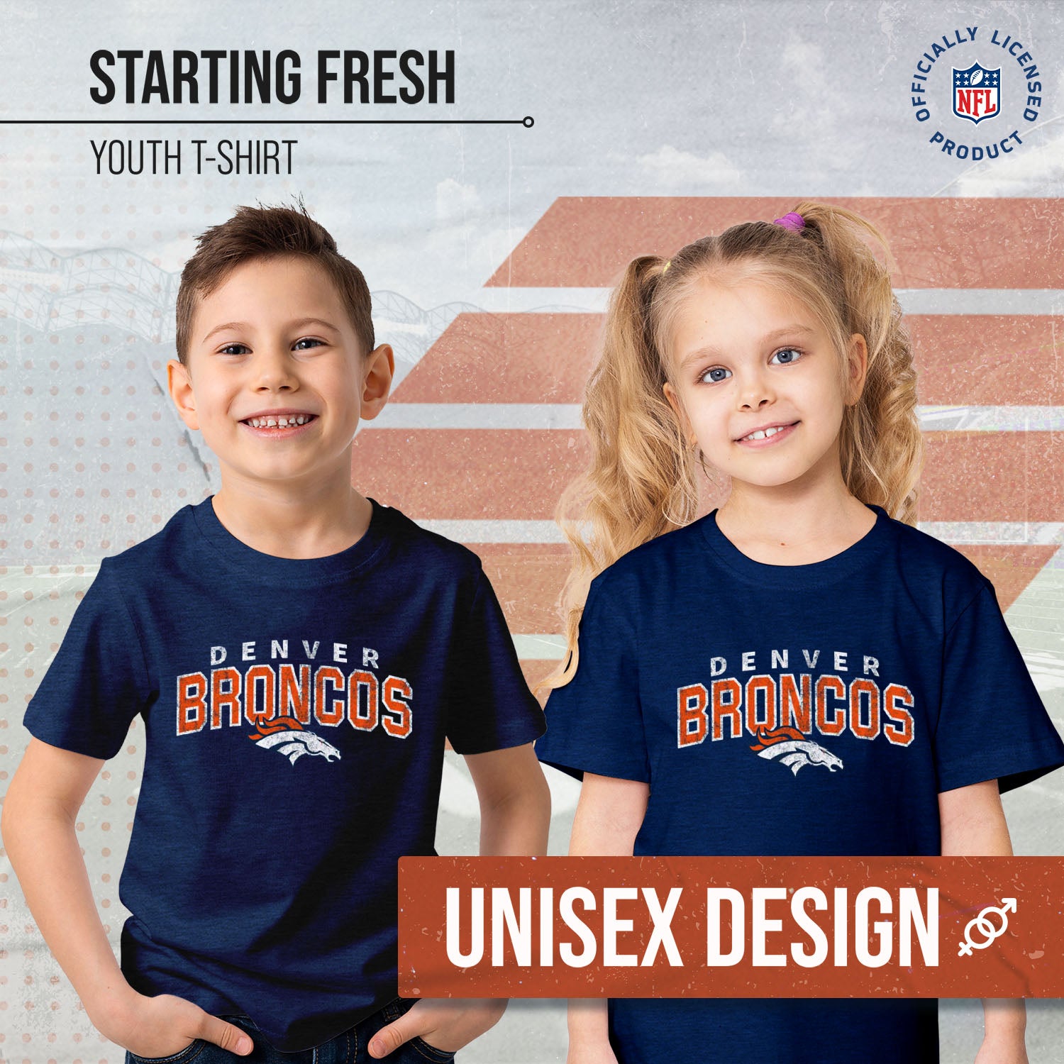 Denver Broncos NFL Youth Starting Fresh Tee- Pro Football Tag-Less T-Shirt For Boys & Girls - Navy