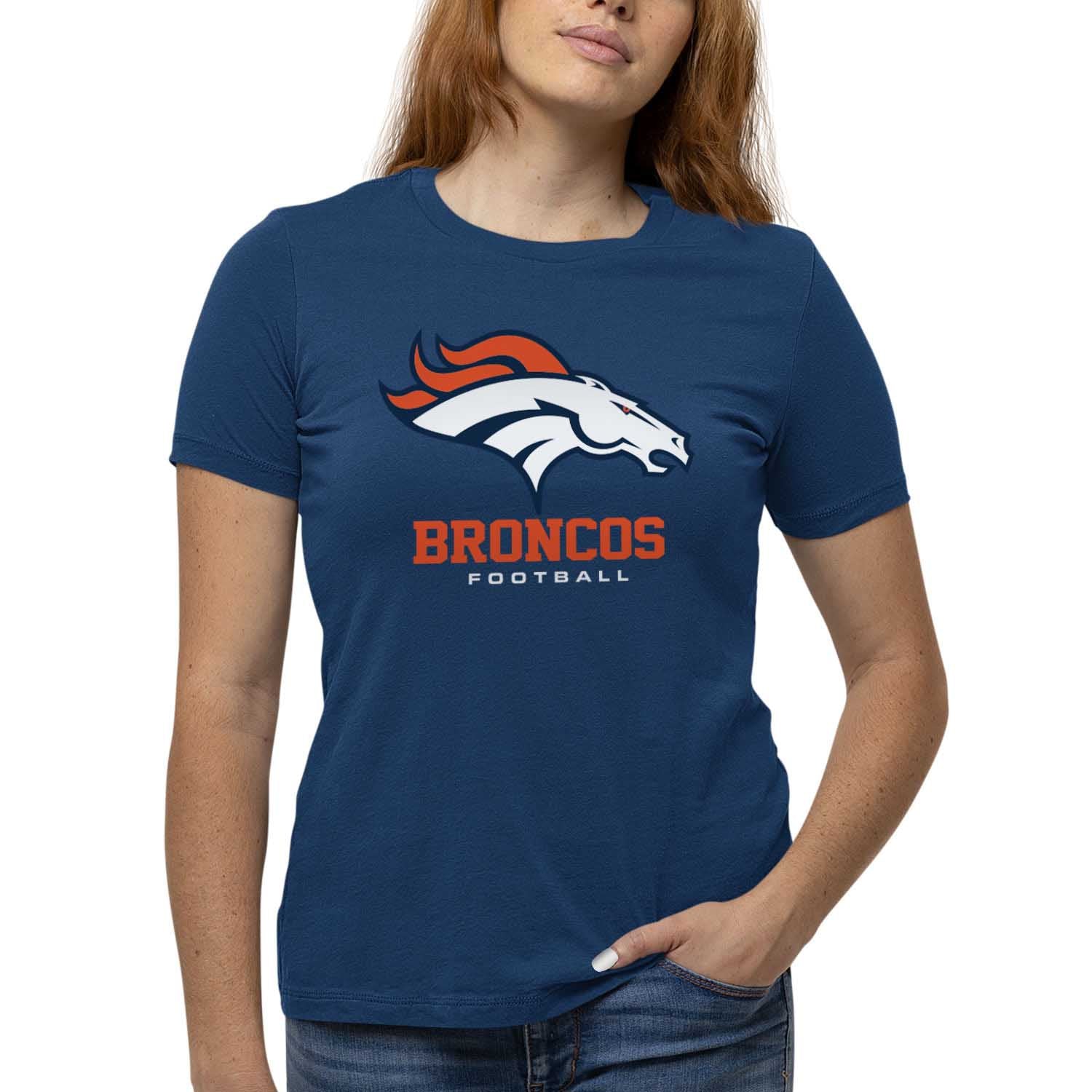 Score with Team Fan Apparel, the ultimate destination for officially licensed NFL apparel for men and women. We use only the highest-quality screen printing techniques to bring you the most comfortable, durable, and stylish clothing possible. Go ahead and show your team pride at the big game or any time! This premium womens t-shirt comes in small, medium, large, XL, and XXL. So needless to say, it fits Denver Broncos fans of all types! Maybe you aren't a Broncos fan but you know someone who is? Don't worry! This high-quality t-shirt is soft, lightweight, breathable, and a GREAT gift for any birthday, anniversary, Mother's day, Valentine's day, or Christmas gift! So, if you want to stand out as the #1 female fan at the next big game or watch party, you're going to want to be wearing one of these Denver Broncos Women's Big Logo t-shirts.