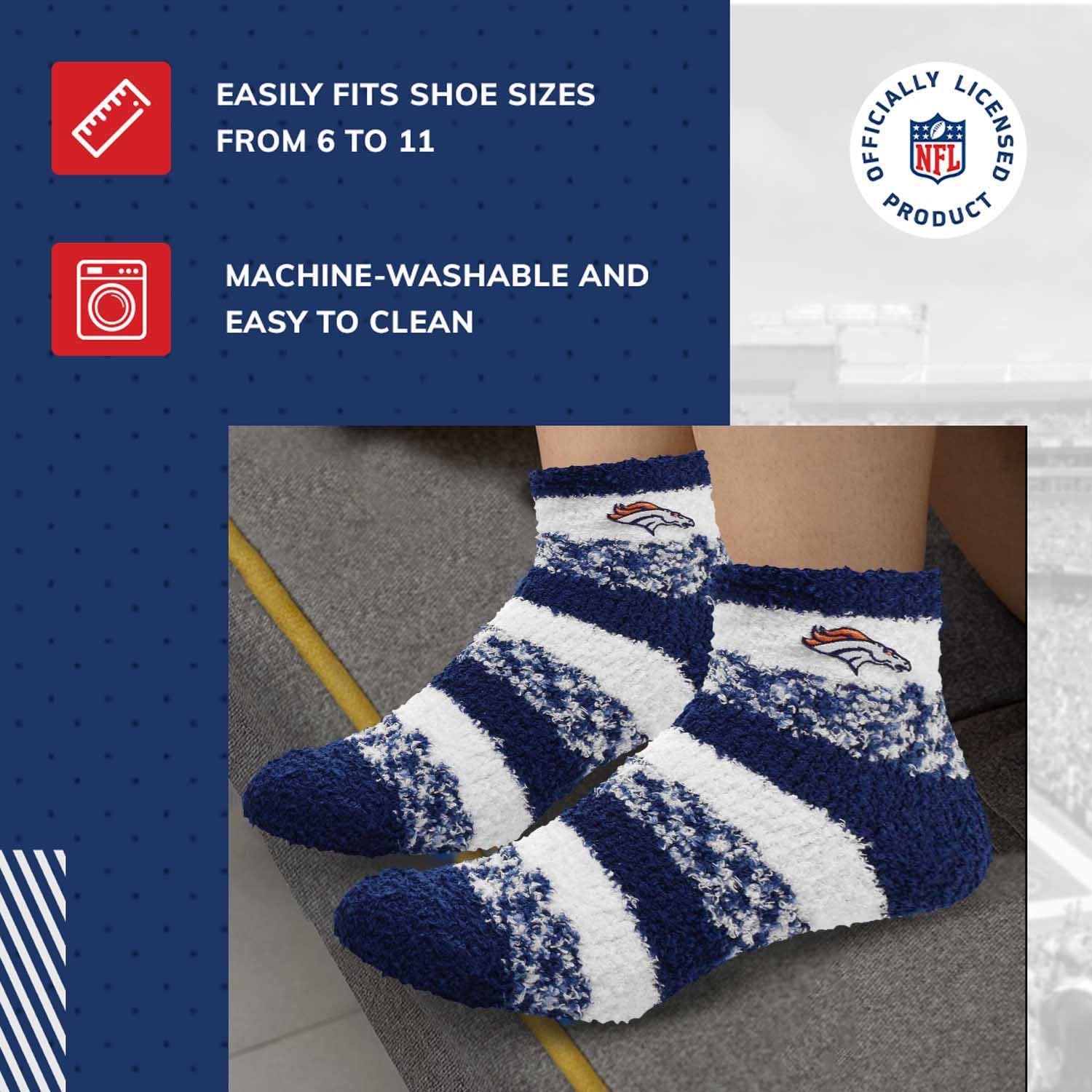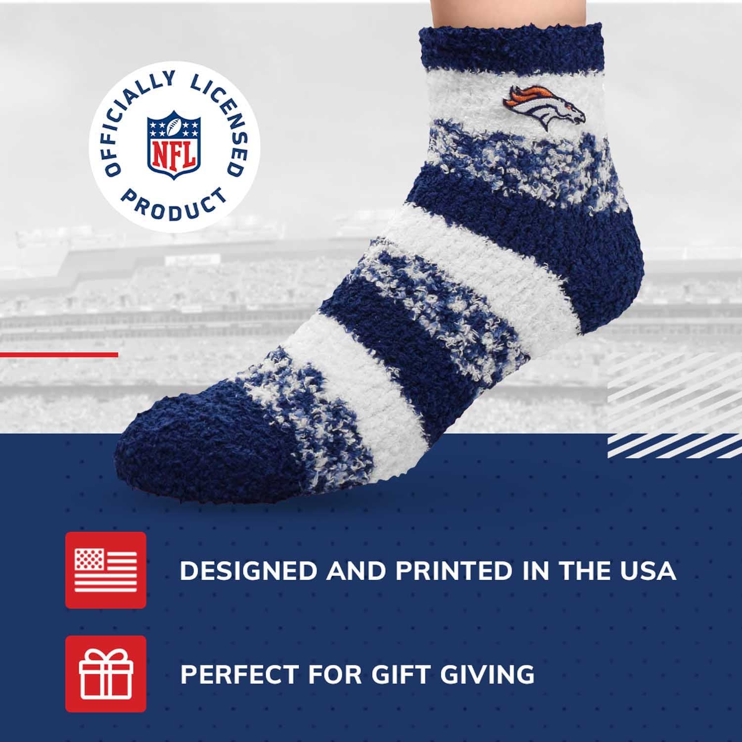 Experience the best Denver Broncos gifts women such as Denver Broncos socks women, cozy house socks, Broncos nfl socks, women cozy socks, and Denver Broncos apparel women. These cozy winter socks women are the perfect socks for women fluffy and go great with your Denver Broncos merchandise and Denver Broncos gifts. This cozy sock set is official Broncos football merchandise. They feel so super cozy plush and are designed as ladies fluffy socks and make the best mothers day gift, birthday gifts for her, Christmas gifts for her, birthday presents, and gifts for football fans. Enjoy women's sock crew. Fits sizes 6 7 8 9 10 11