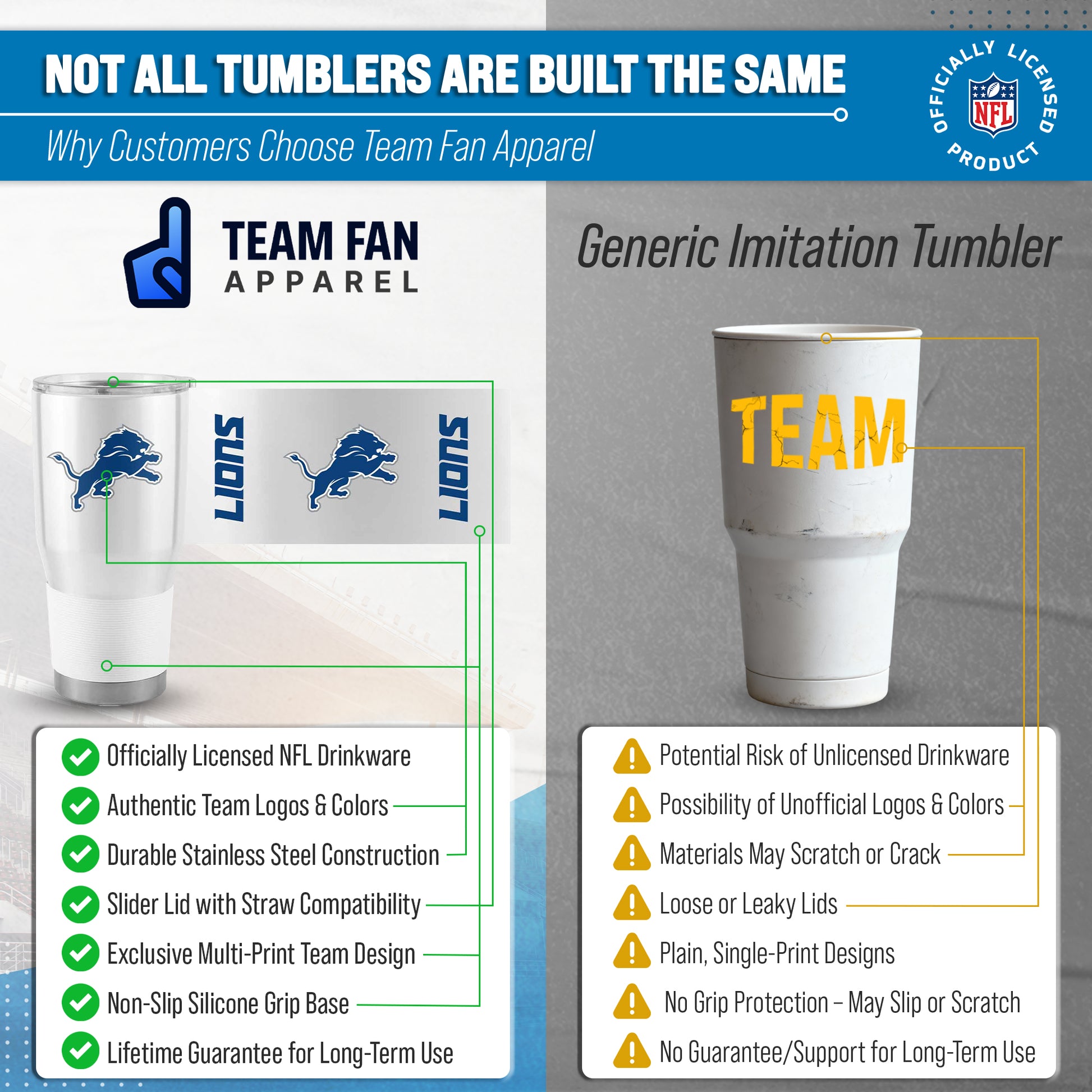 Detroit Lions NFL 30oz Gameday Stainless Steel Tumbler - White