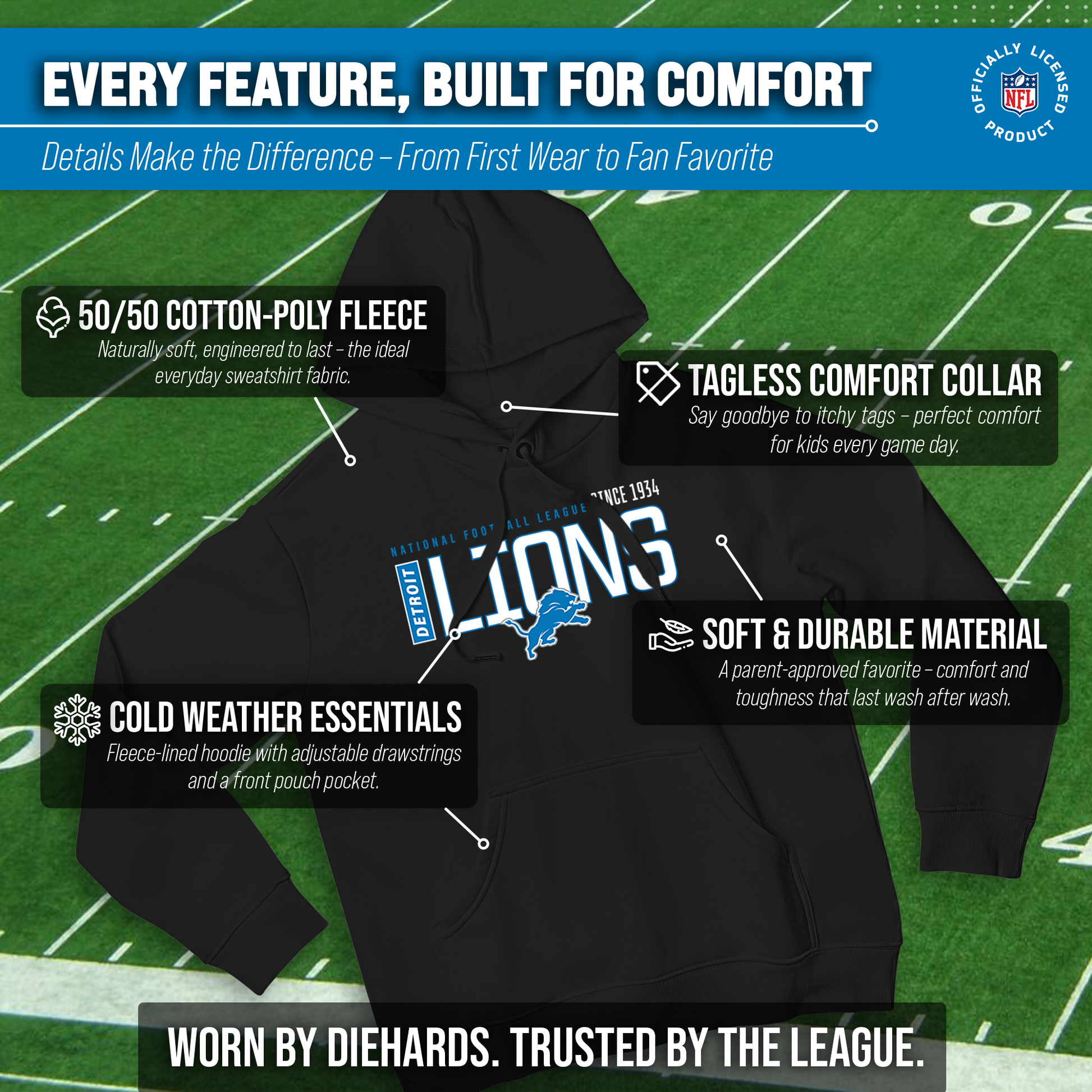 Detroit Lions NFL Adult Unisex Modern Endzone Soft Fleece Hooded Sweatshirt - Black