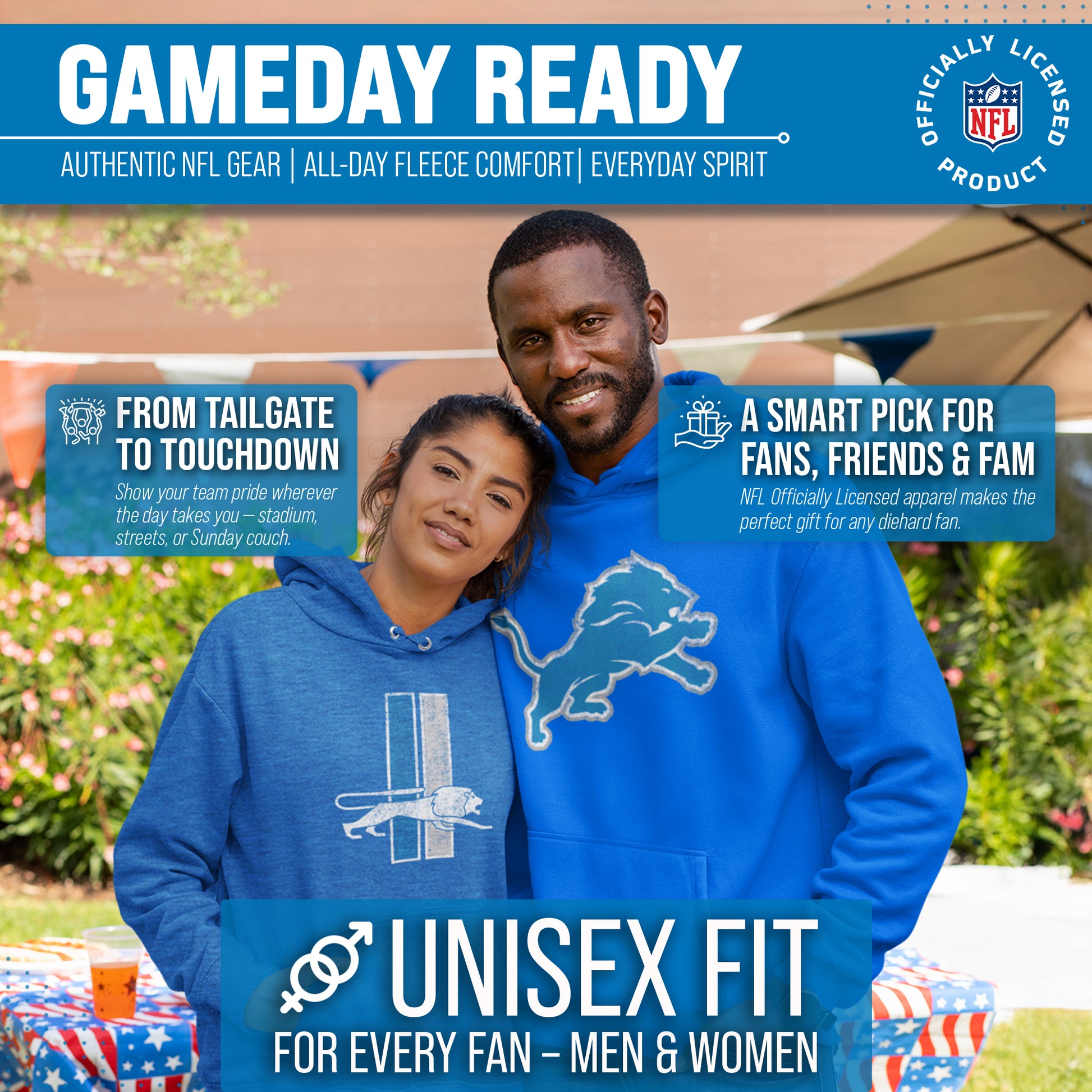 Get Ready to Show Your Team Spirit in the Most Comfortable Way Possible with Team Fan Apparel's Detroit Lions NFL Modern Throwback Hooded Sweatshirt! Made with ultra-soft fleece material, this hooded sweatshirt is perfect for game days or just lounging around the house. With its unique vintage design and performance material, you can proudly represent your favorite team wherever you go. Not only is it officially licensed by the NFL, but it also comes in adult unisex sizing so both men and women can rock their team pride. The modern throwback design adds a classic touch to your gameday attire, making you stand out from the crowd. So why settle for a basic sweatshirt when you can show off your style and support your team at the same time? Grab your NFL Modern Throwback Hooded Sweatshirt from Team Fan Apparel today and get ready to cheer on your Lions in ultimate comfort!