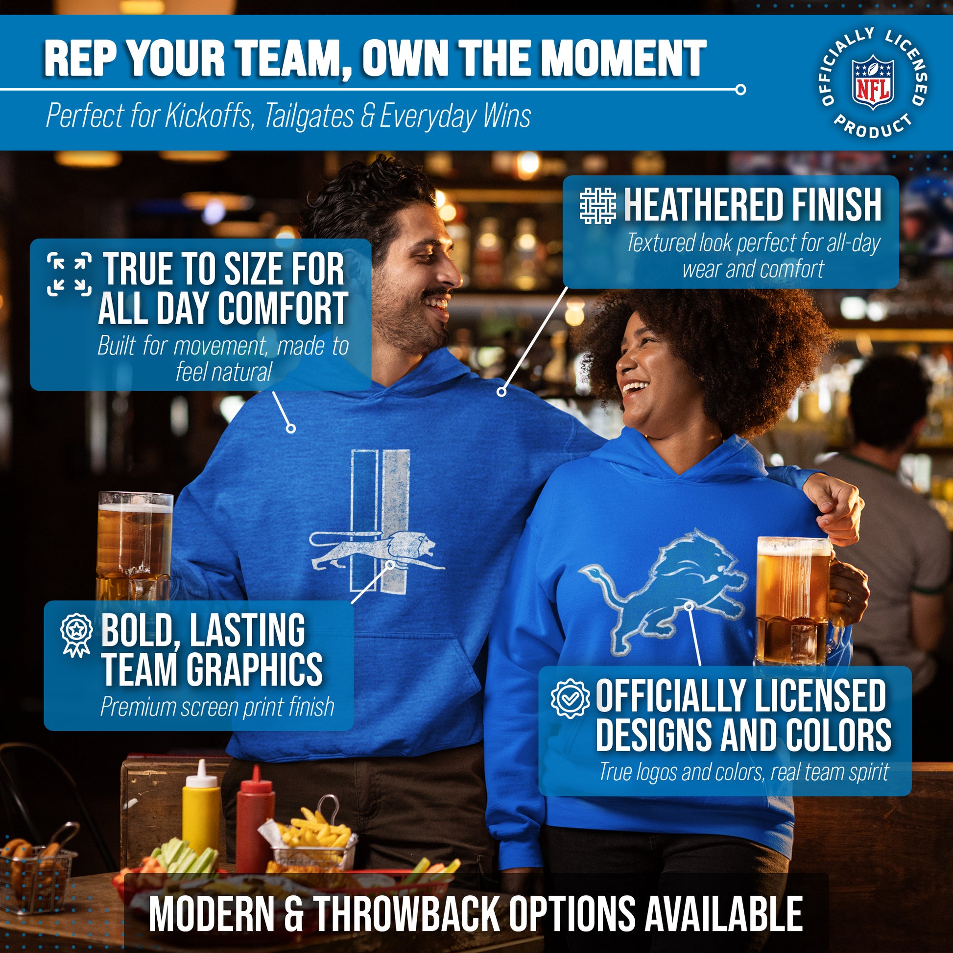 Detroit Lions NFL Adult Unisex Modern Throwback Ultra Soft Fleece Hooded Sweatshirt - Royal