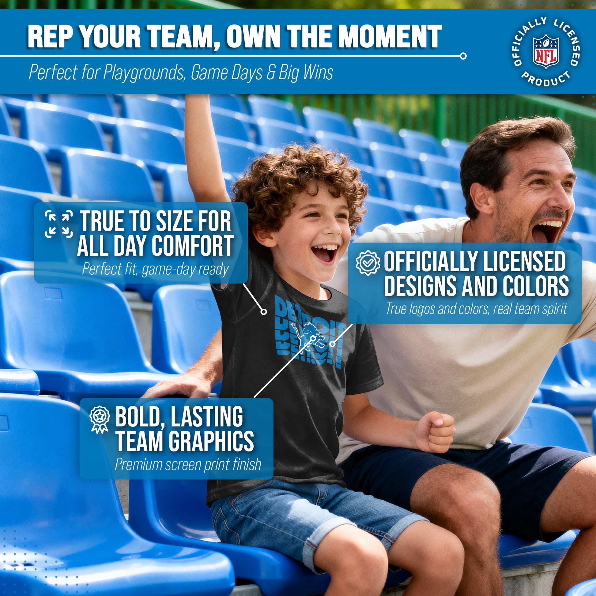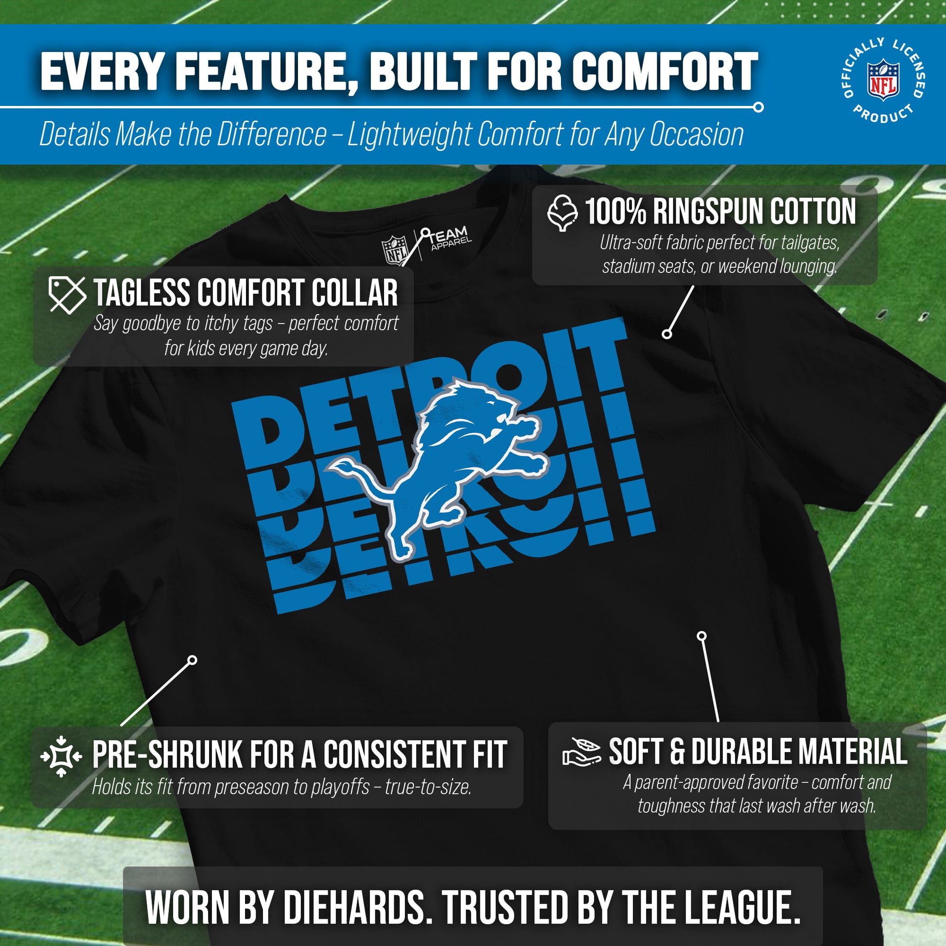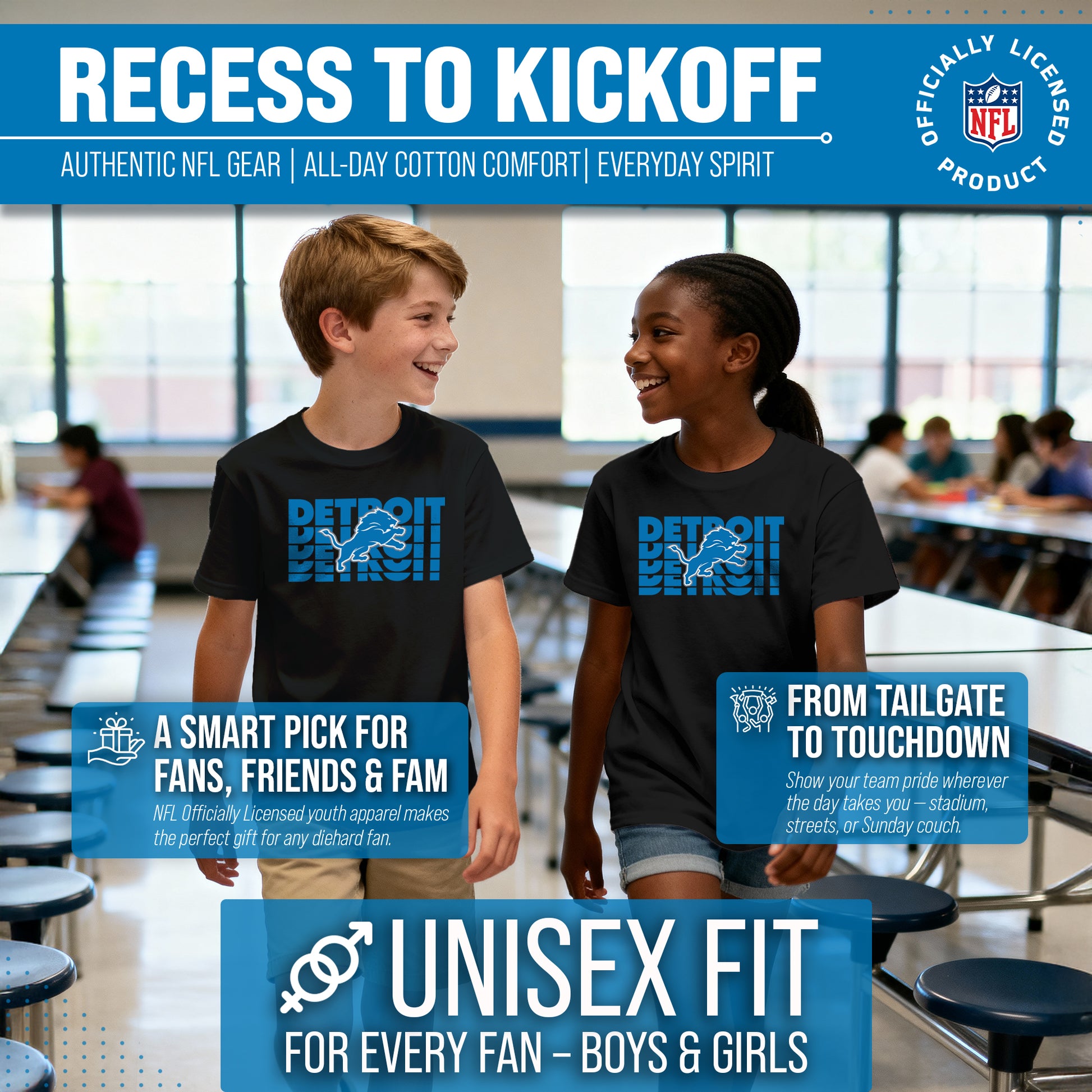 Detroit Lions NFL Youth Repeating Logo Football T-Shirt Unisex Tag Free Comfortable - Black