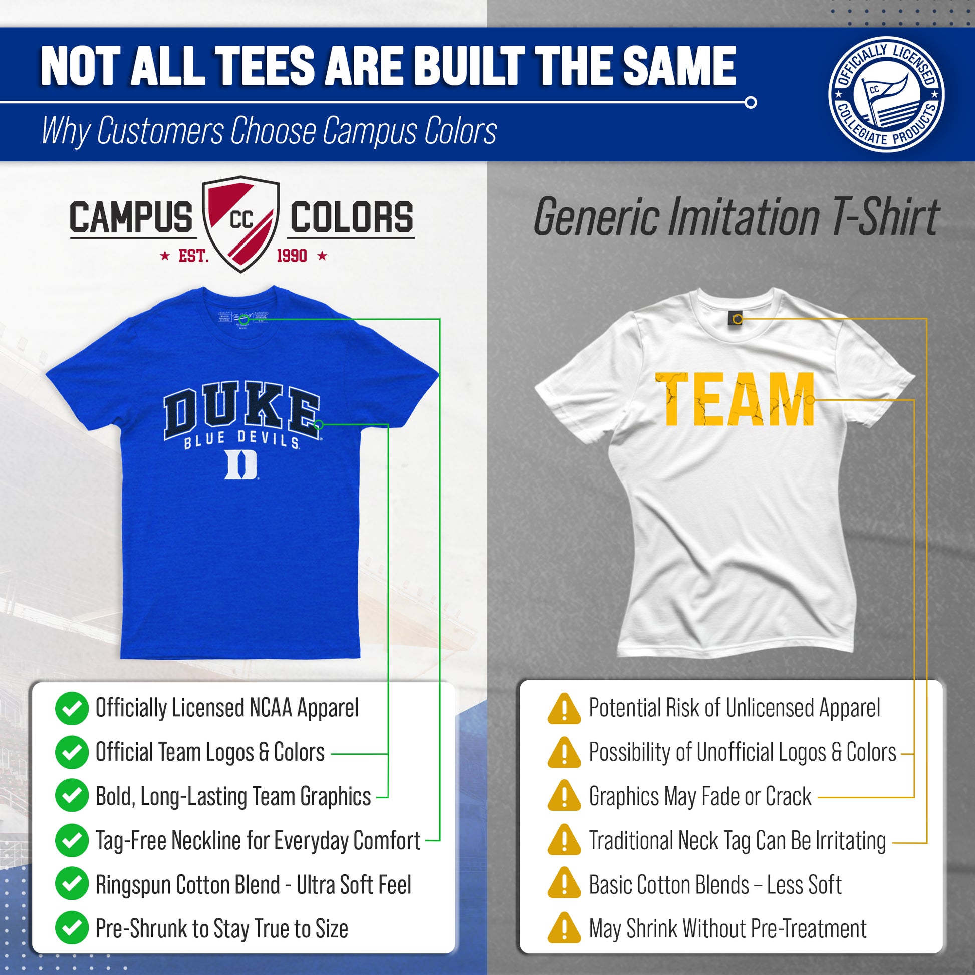 Go Team, Go! Show off your school spirit with the NCAA Adult Unisex Starting Fresh Duke Blue Devils Heathered T-Shirt! Our officially licensed apparel will have you feeling like a member of the team! Made from a comfortable and breathable cotton/polyester blend and featuring a teamcolor garment, this t-shirt is perfect for game days, tailgates, or just lounging around. The tag-less design ensures ultimate comfort and no annoying tags to distract you from cheering on your team. Perfect for wearing to the big game, watching from home, hanging with friends, or even working out! Our Starting Fresh Duke Blue Devils shirt makes a great gift for yourself, or any Blue Devils fan in your life! Our shirts are made from a soft cotton polyester blend for a soft feel against your skin and features a classic design highlighting your favorite college team. With short sleeves and a variety of sizes to choose from, these t-shirts are perfect for men and women alike. So gear up for game day with the NCAA Adult Unisex Starting Fresh T-Shirt - the perfect addition to any Duke Blue Devils fan's wardrobe!