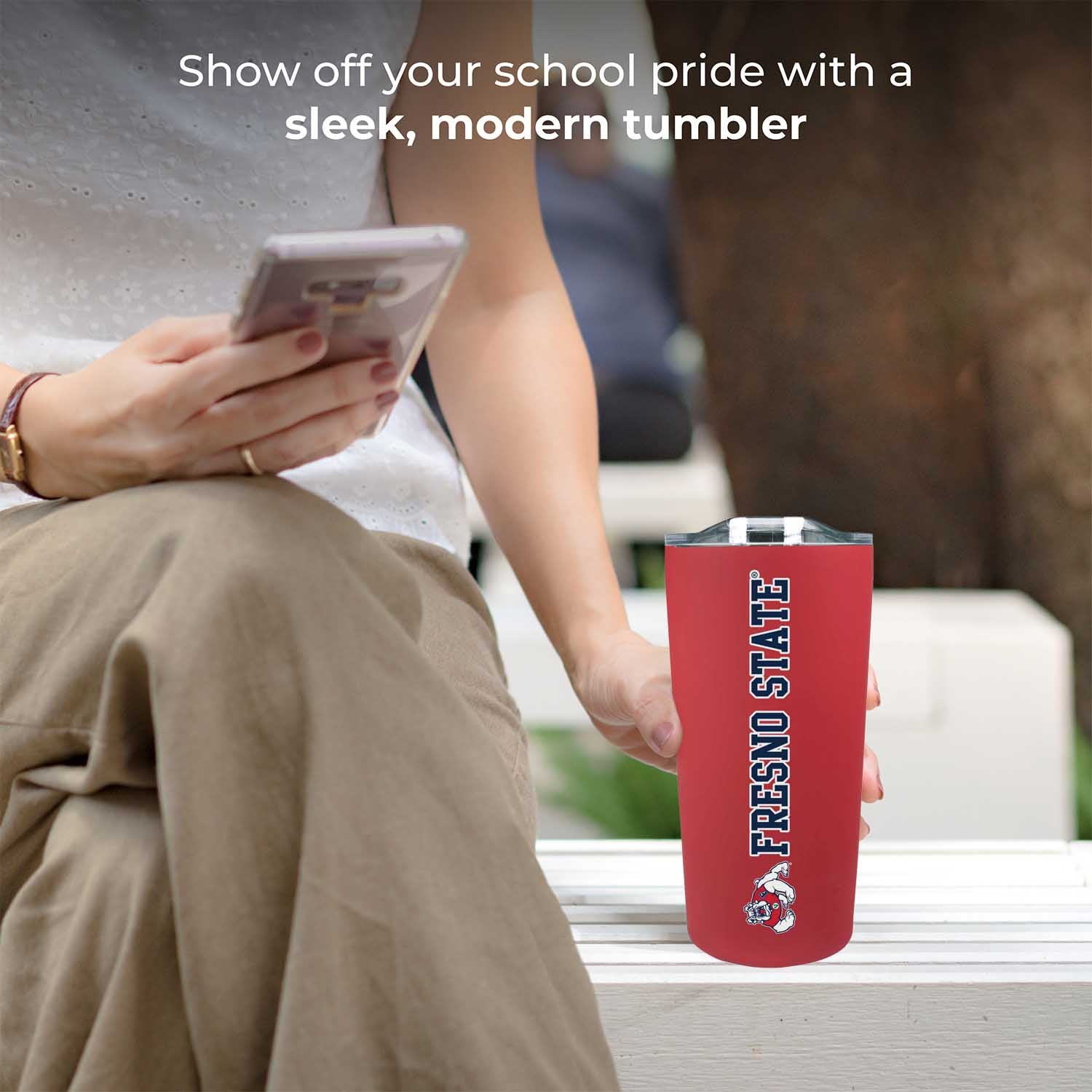 Our stainless steel tumbler mugs are designed for constant use in any type of setting! At a sports game? These insulated tumblers are compact and can fit in most cup holders. On the move? Our contoured spout makes it easy to sip on the go! Your tumbler is there to compliment your Fresno State sweatshirt when you need to stay warm and there when you're looking for an ice-cold refreshment. No matter the setting, show your school pride while properly and efficiently preserving the desired temperature of your beverage! This Fresno State Bulldogs travel mug also makes a great gift if you're looking to give someone a cool Bulldogs novelty, this Fresno State Bulldogs travel mug compliments any kind of Bulldogs apparel. Combine the Fresno State water bottle with a Fresno State pillow, a Fresno State face mask, and a Fresno State blanket and give a whole haul of Bulldogs gear to your favorite Fresno State Bulldogs alumni! All of our products feature the official team colors, logos and lettering. We don't skimp on quality in any way. The colors are always vibrant and the graphics are always accurate and brimming with team spirit.