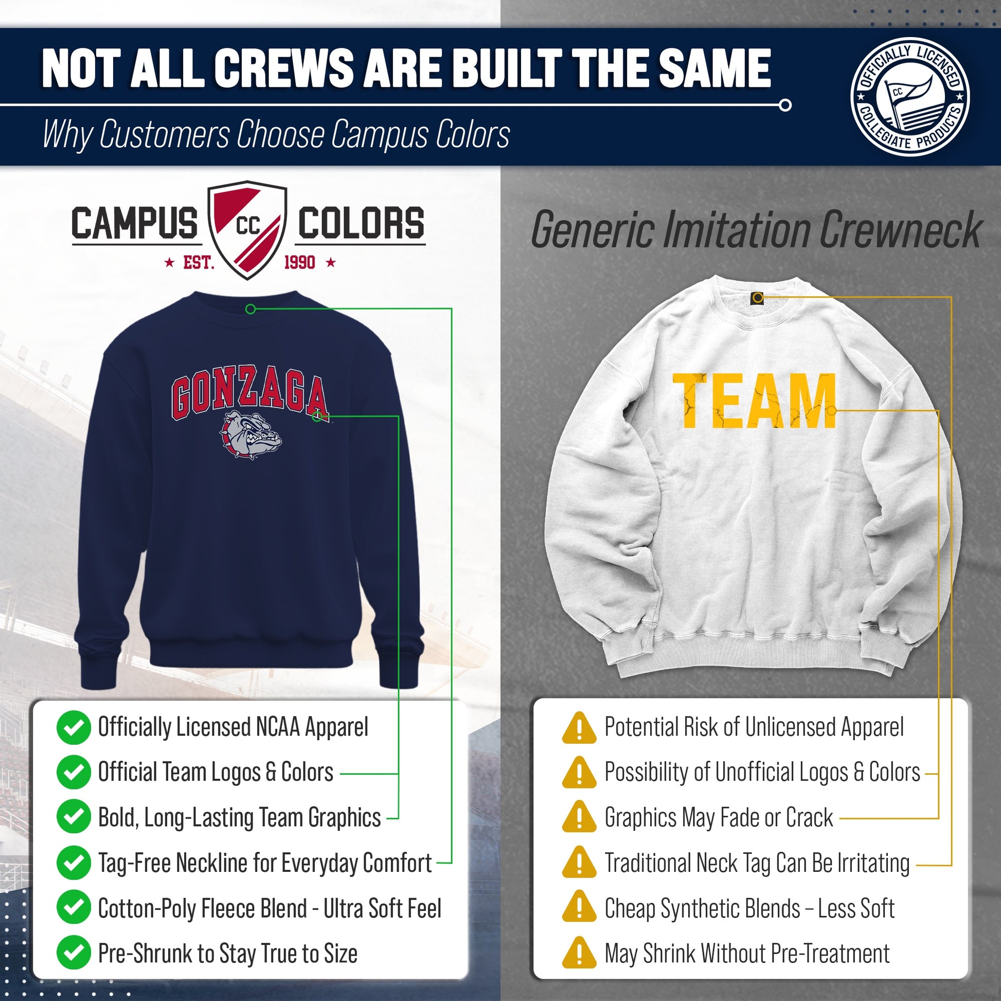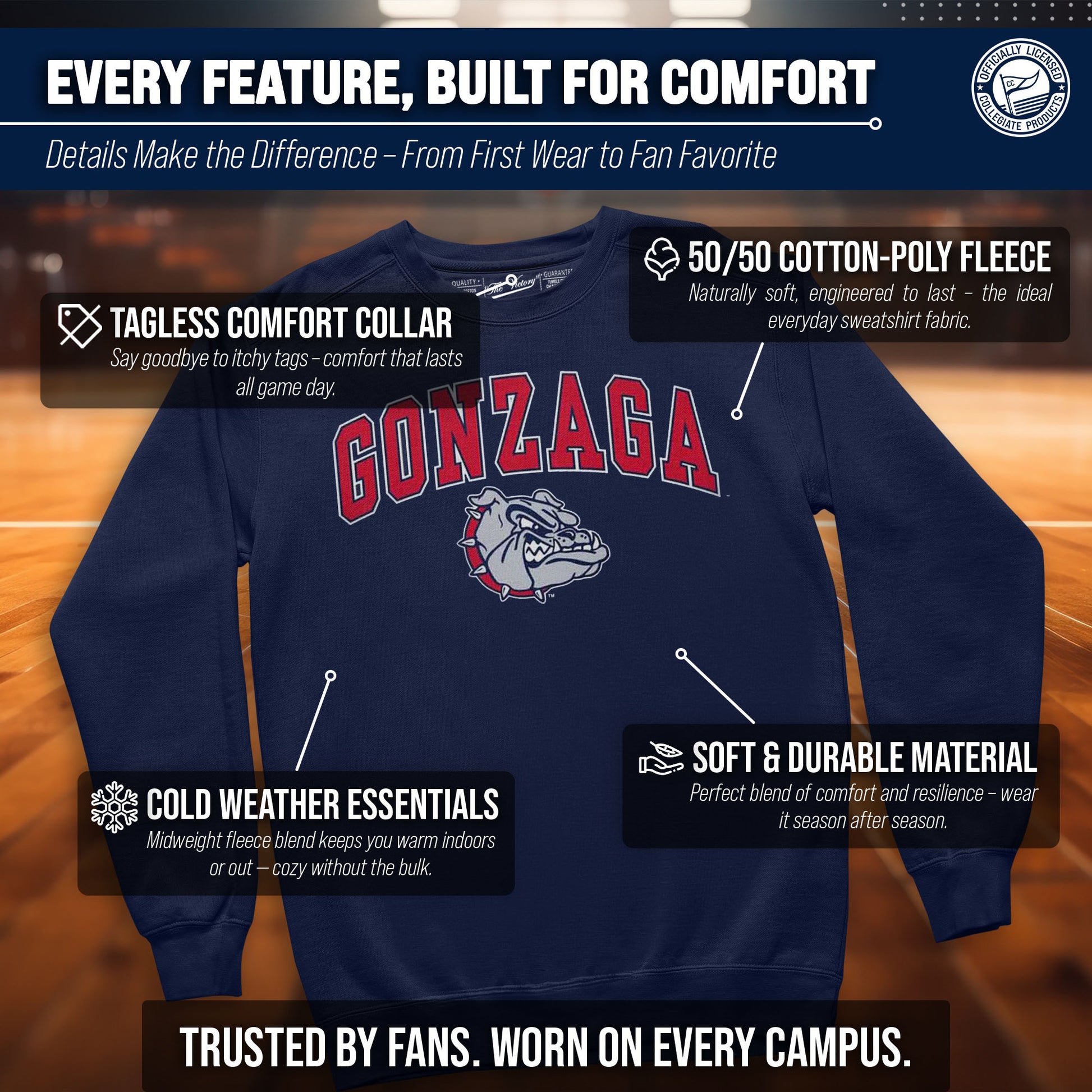 Gonzaga Bulldogs Campus Colors Adult Arch & Logo Soft Style Gameday Crewneck Sweatshirt - Navy