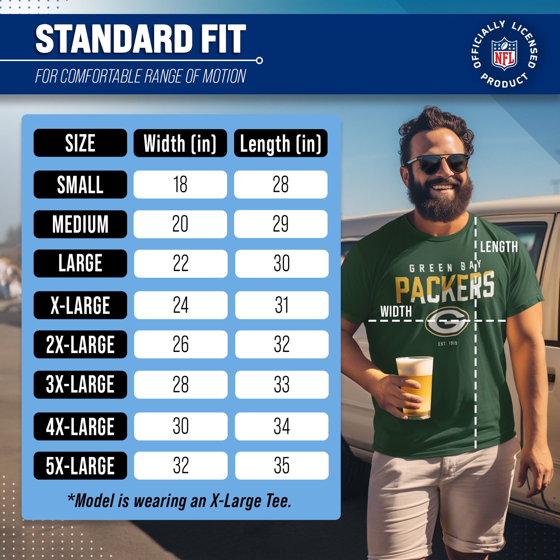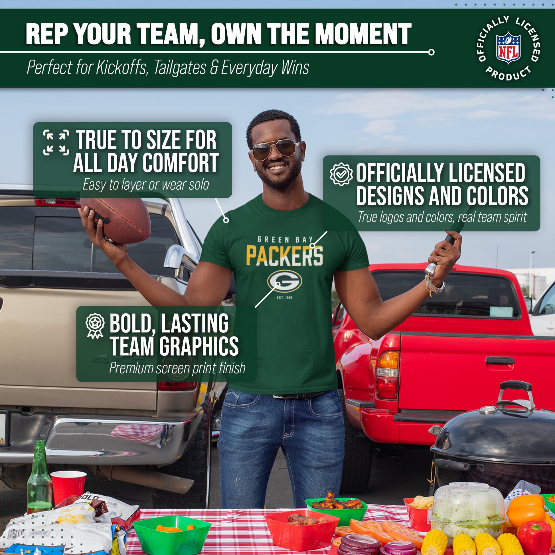 Score with Team Fan Apparel, the ultimate destination for officially licensed NFL apparel for men and women. We use only the highest quality screen printing techniques to bring you the most comfortable, durable, and stylish clothing possible. Go ahead and show your team pride at the big game or any time! This premium t-shirt fits both male and female adults and comes in small, medium, large, XL, and XXL. So needless to say, it fits Green Bay Packers fans of all types! Maybe you aren't a Packers fan but you know someone who is? Don't worry! This high-quality t-shirt is soft, lightweight, breathable and a GREAT gift for any birthday, anniversary, Father's Day, Mother's day, you name it! So, if you want to stand out as the #1 fan at the next big game or watch party, you're going to want to be wearing one of these hockey t-shirts.