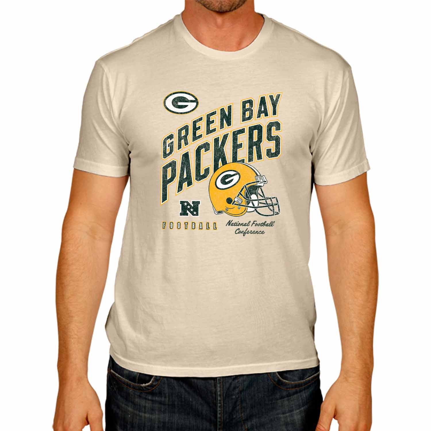 Green Bay Packers NFL Adult Distressed Helmet Tag-Less T-Shirt - Cream
