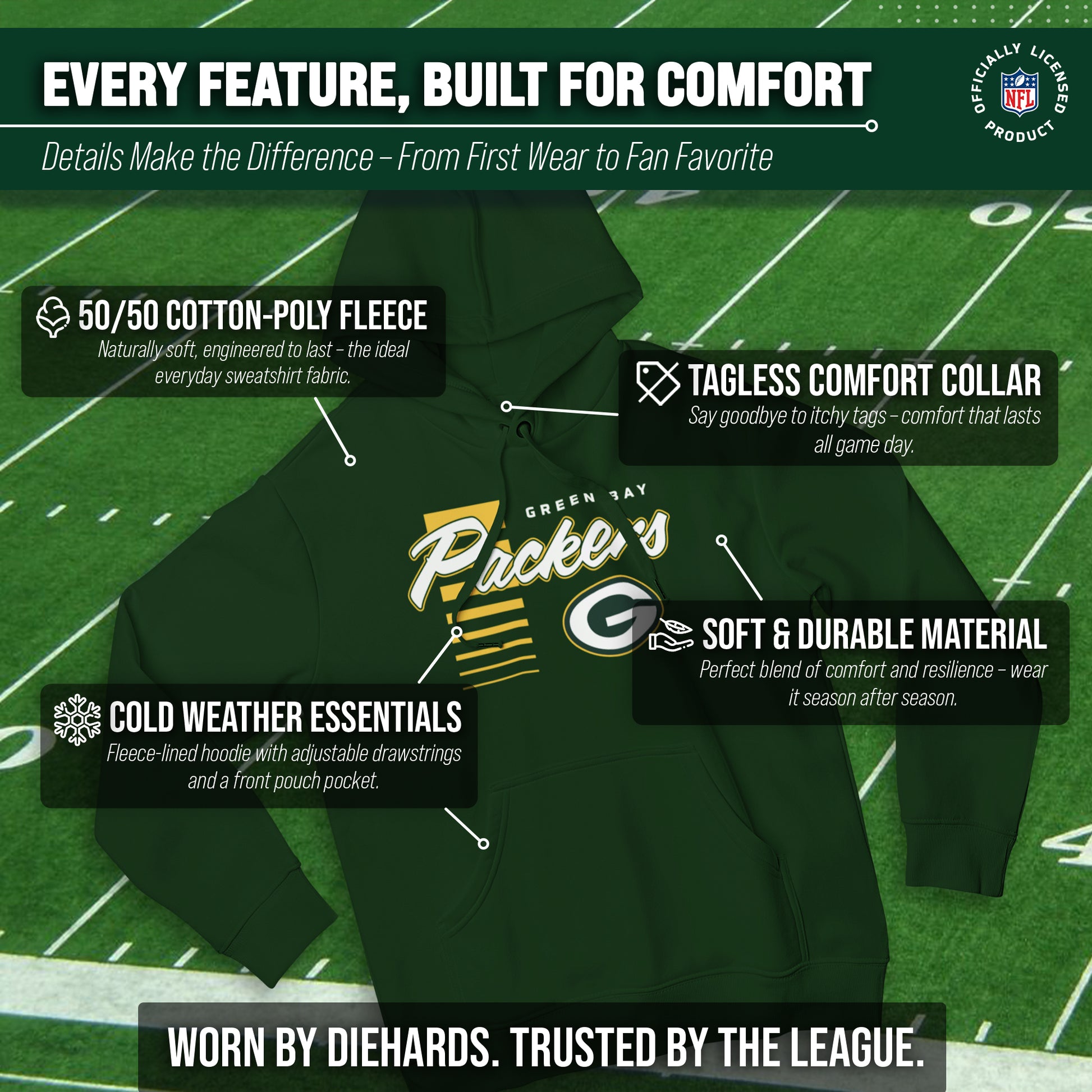 Get Ready to Show Your Team Spirit in the Most Comfortable Way Possible with Team Fan Apparel's Green Bay Packers NFL Retro Script Hooded Sweatshirt! Made with ultra-soft fleece material, this hooded sweatshirt is perfect for game days or just lounging around the house. With its unique design and performance material, you can proudly represent your favorite team wherever you go. Not only is it officially licensed by the NFL, but it also comes in adult unisex sizing so both men and women can rock their team pride. The retro script design adds a vintage touch to your gameday attire, making you stand out from the crowd. So why settle for a basic sweatshirt when you can show off your style and support your team at the same time? Grab your NFL Retro Script Hooded Sweatshirt from Team Fan Apparel today and get ready to cheer on your Packers in ultimate comfort!
