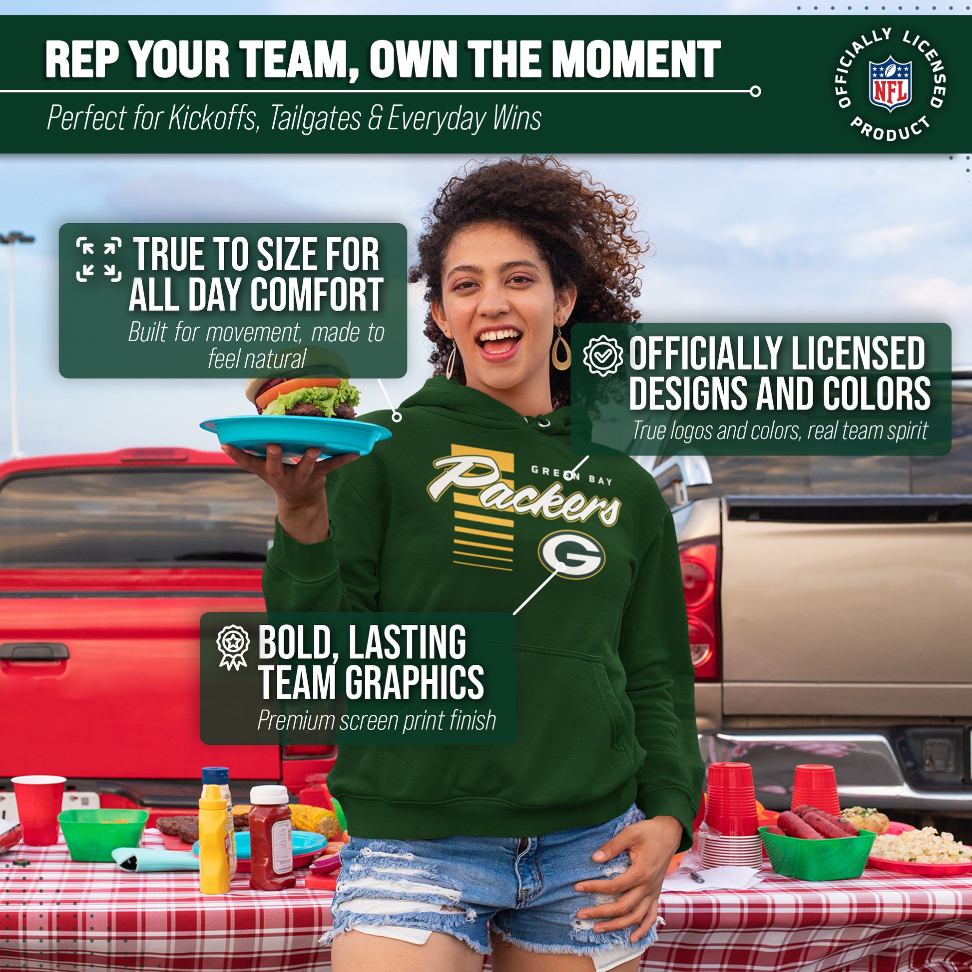 Green Bay Packers NFL Adult Unisex Retro Script Ultra Soft Fleece Hooded Sweatshirt - Forest Green