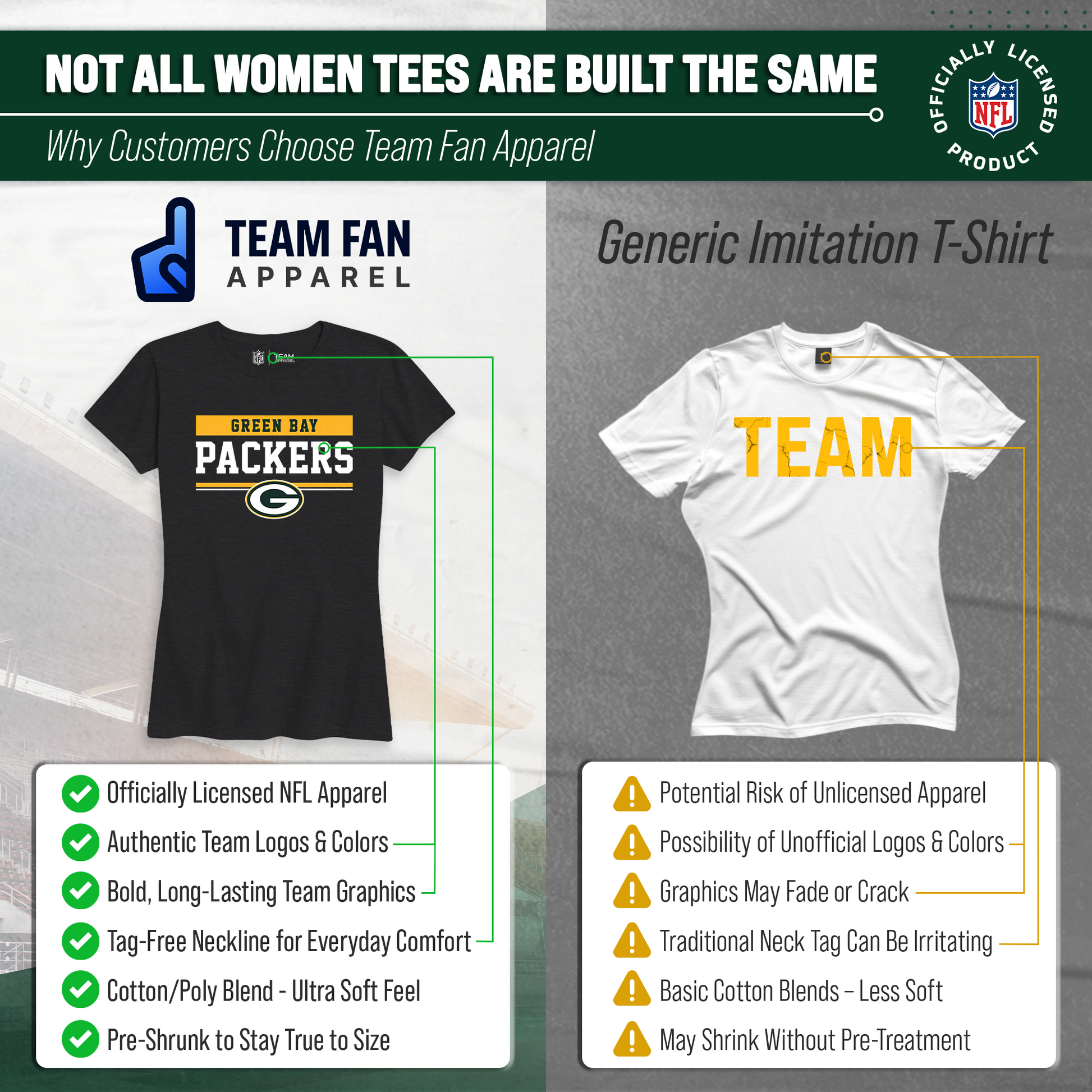 Our officially licensed womens Green Bay shirt is super comfortable, runs true to size, and is great for showing off your Green Bay Packers pride. The high-quality thermal printed logo will look fresh after years of wear, making it a great alternative to your womens Green Bay Packers jersey. Our charcoal t-shirt has a relaxed yet contoured fit for a casual yet feminine look. The short sleeve shirt is perfect with shorts for tailgates in warmer months, or with jeans or leggings and a sweater during colder months. Available in plus sizes, our Green Bay shirts for women plus size or straight size will make anyone feel comfortable enough to show off their love for the Green Bay Packers. If you're looking to give team t shirts for women as a gifts, our womens charcoal tshirt is the Packers shirt women will love. Officially licensed to ensure no counterfeit designs or colors, our Green Bay Packers womens shirts are great for superfans. 100% ringspun and made from a blend of cotton and polyester, designed to keep you cool and comfortable all year long. The womens gameday football t shirt will definitely become one of your favorite tops.