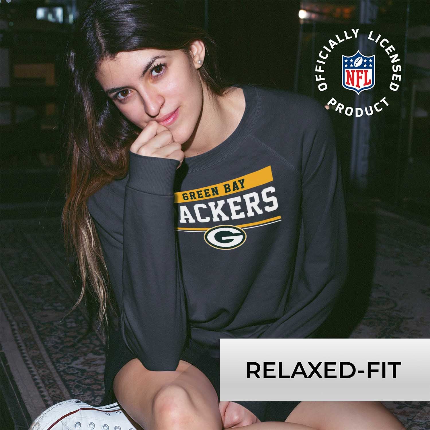 Our officially licensed womens Green Bay Packers long sleeve charcoal crew neck pullover is super comfortable, has an oversized fit, and is great for showing off your Green Bay pride. The high-quality thermal printed logo and wordmark will look fresh after years of wear, making it a great alternative to wearing a Green Bay Packers womens jersey. Our womens long sleeve slouchy crewneck has a relaxed fit for a casual, comfortable look. The long sleeve Green Bay crew will look great with shorts at tailgates in warmer months, or with jeans or leggings when it gets cooler. Layer it with a hoodie or even a Green Bay football jersey when the weather gets cold. Available in plus sizes up to 3XL, this is a Green Bay Packers pullover that women who are plus size or straight size will feel comfortable in. If you're looking to give the gift of ladies Green Bay apparel, our long sleeved Green Bay Packers Slouchy Crew is the perfect gift. Officially licensed to ensure no counterfeit designs or colors, these Green Bay crews for women are perfect for super fans. Made from a cotton poly blend to keep you comfortable, the womens raglan long sleeve Gameday Slouchy Crew will definitely become one of your favorite pieces of Green Bay Packers apparel.