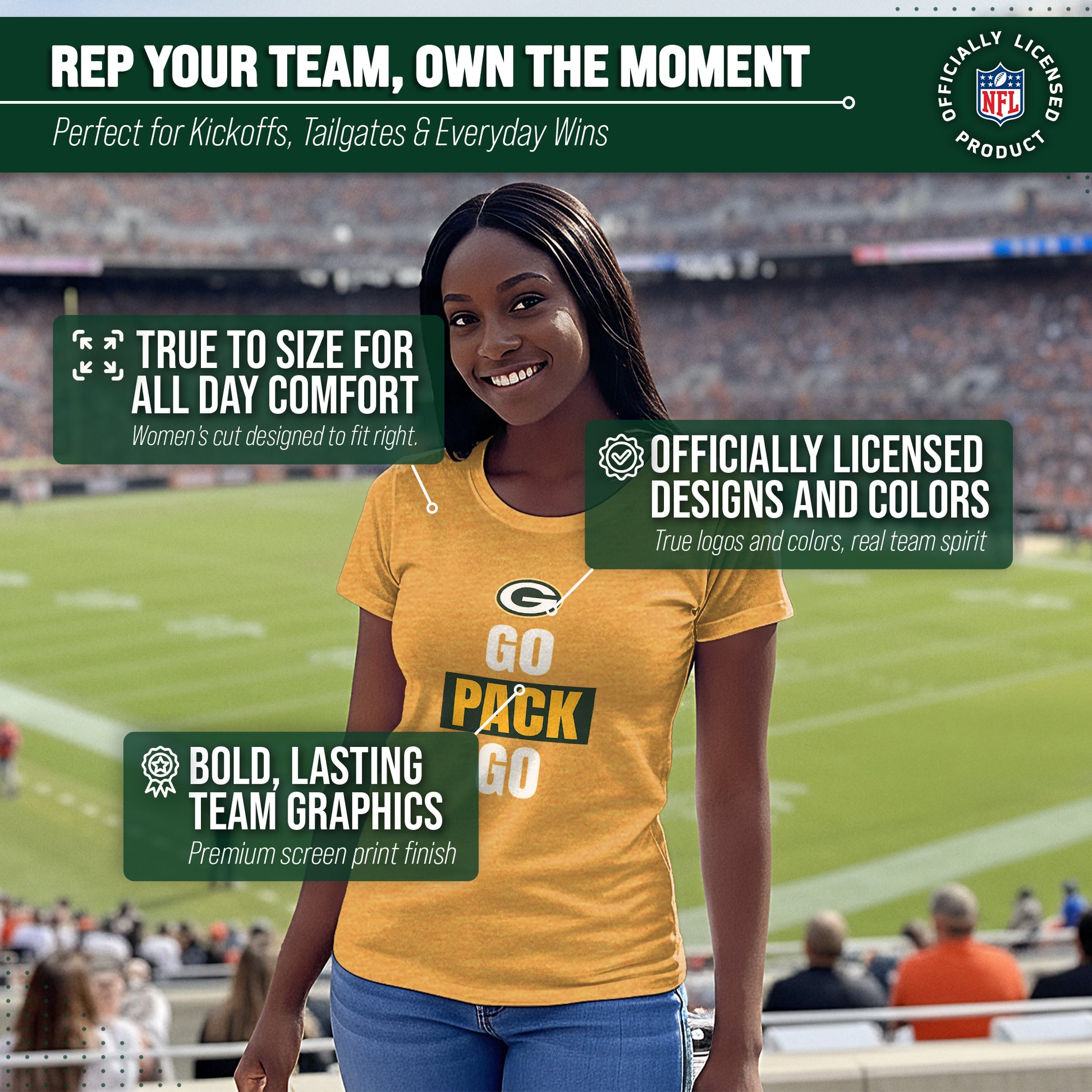 Green Bay Packers NFL Womens Team Slogan Short Sleeve Tshirt - Gold
