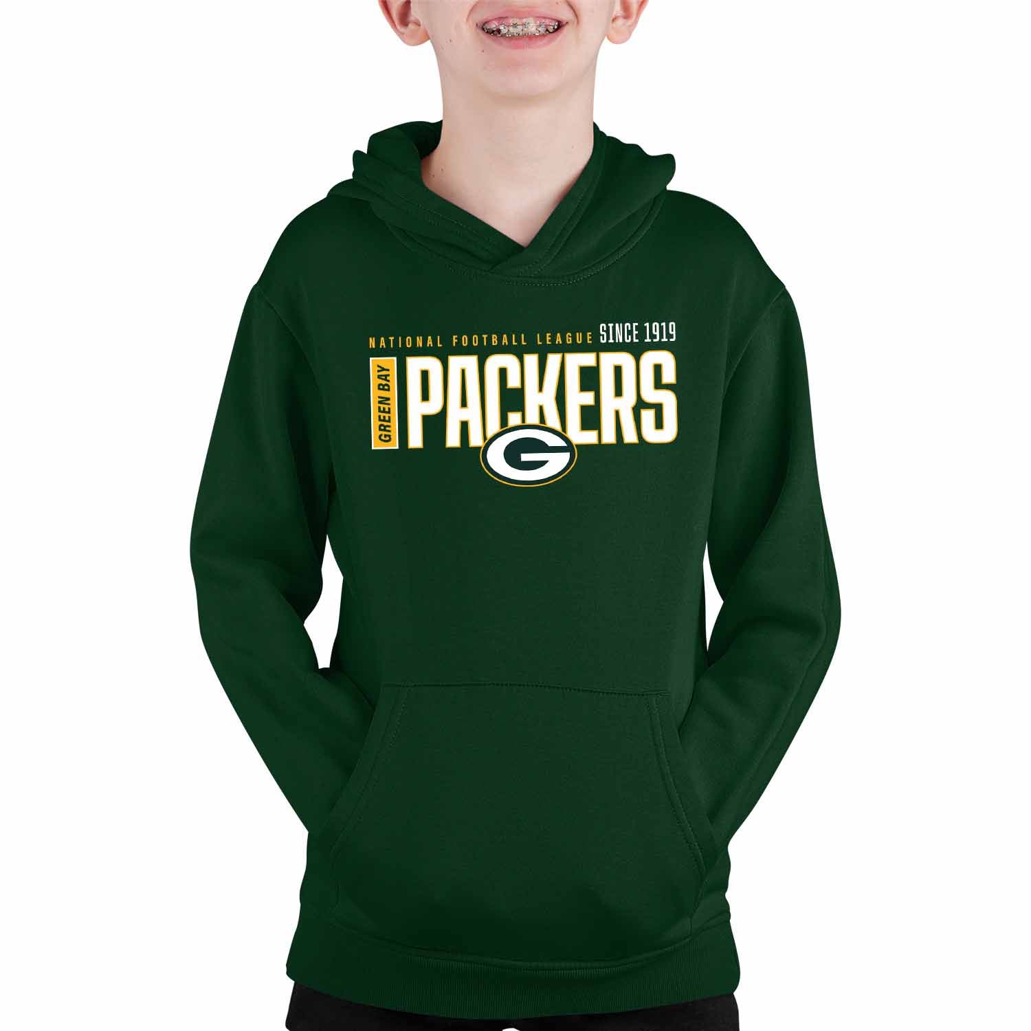 Green Bay Packers NFL Youth Modern Endzone Football Fleece Hooded Sweatshirt - Forest Green