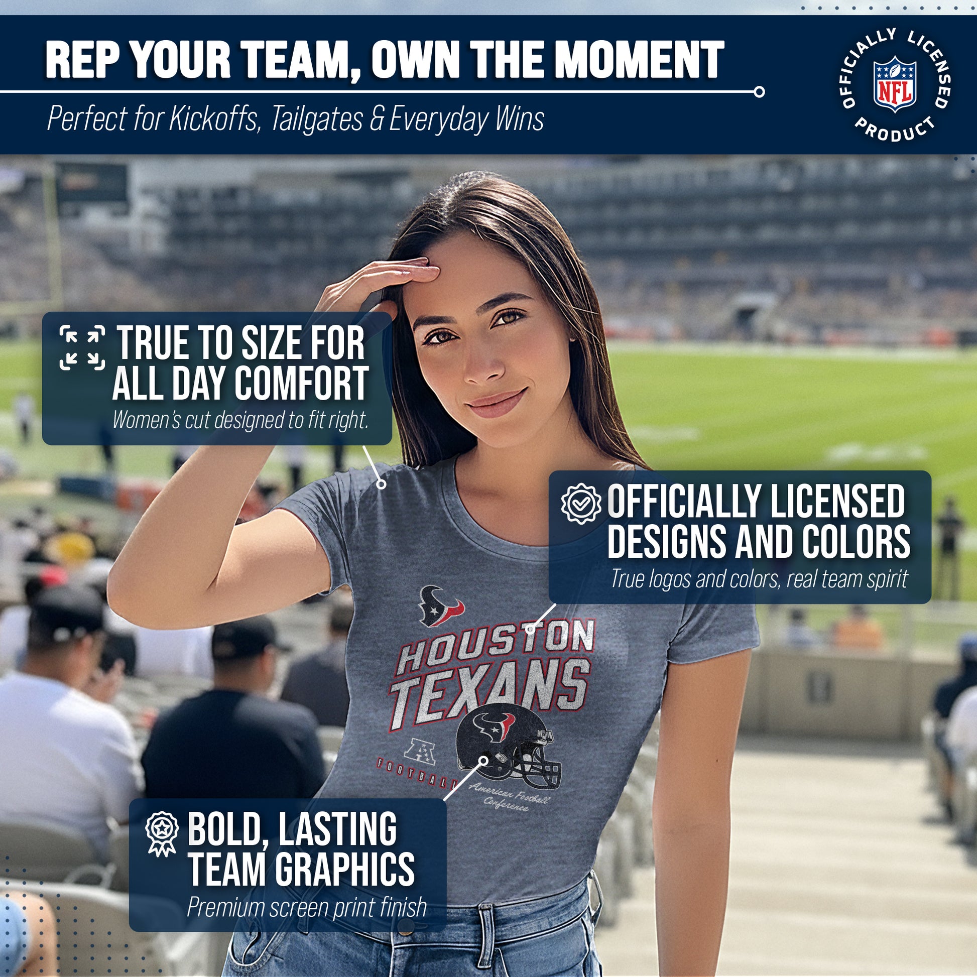 Houston Texans NFL Womens Distressed Helmet Tag-Less Soft T-Shirt - Blue Heather