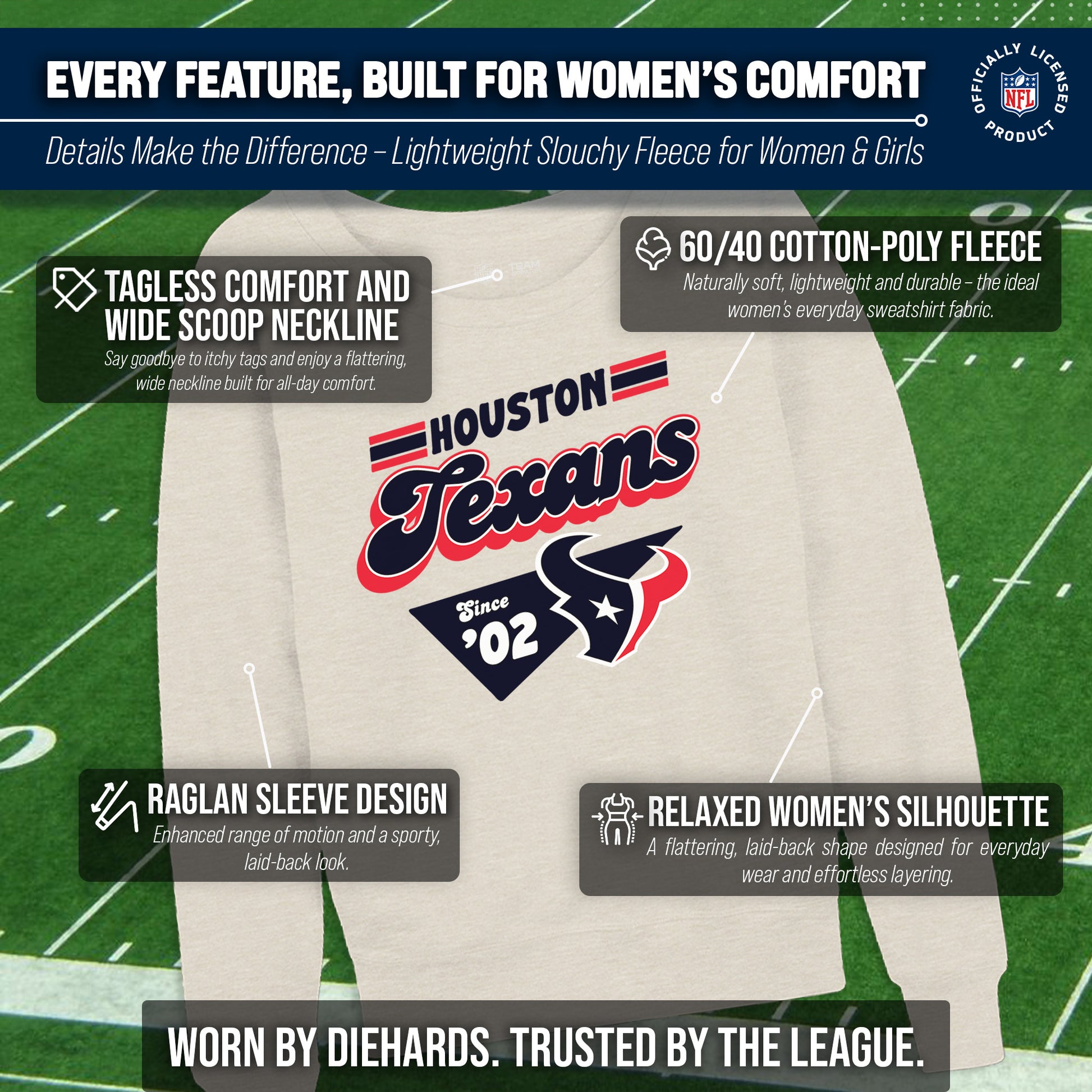 Houston Texans NFL Womens Vintage Charm Slouchy Crewneck - Birch