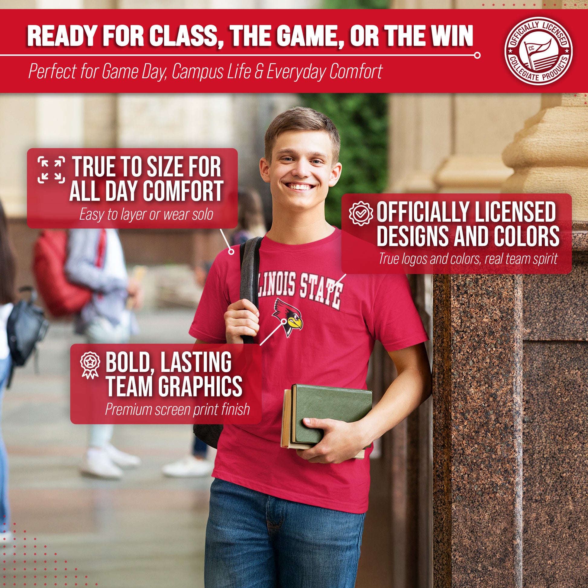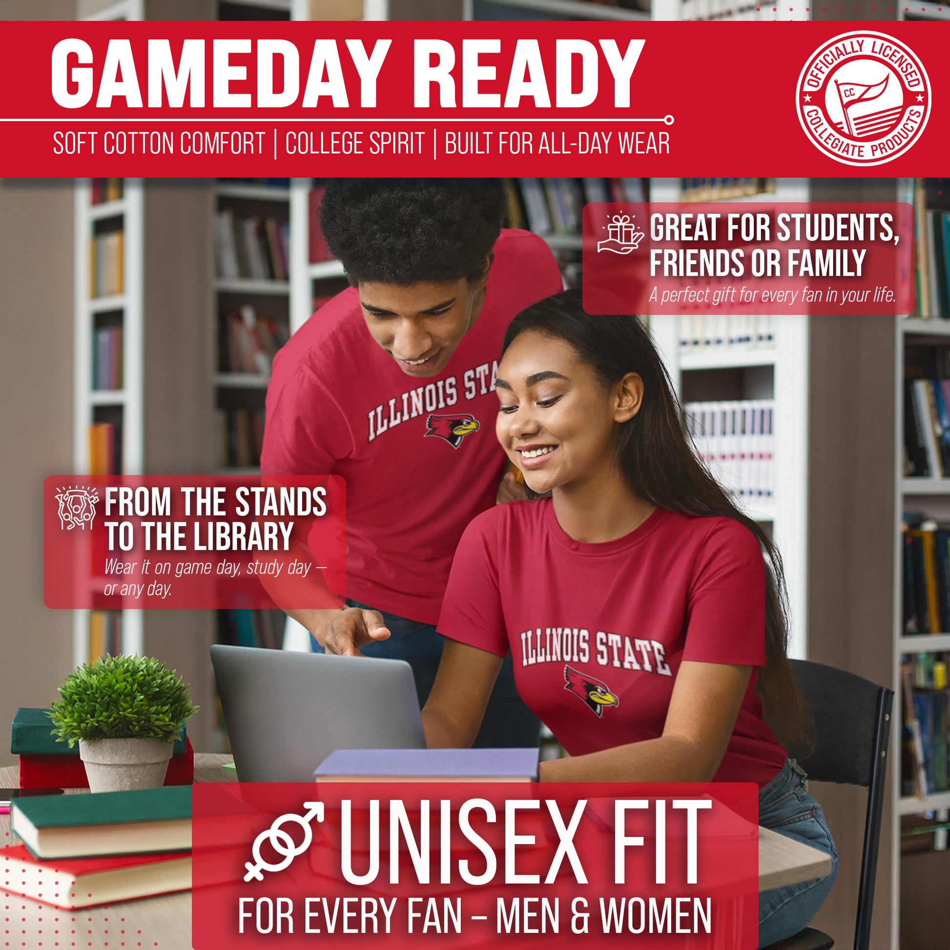 Score with Campus Colors, the ultimate destination for officially licensed college apparel for men and women. Design and printed in the USA, we use only the highest quality screen printing techniques to bring you the most comfortable, durable, and stylish clothing possible. Go ahead and show your team pride at the big game or any time! This premium-quality Gameday t-shirt fits both male and female adults and comes in small, medium, large, XL, and XXL. So needless to say, it fits Illinois State Redbirds fans of all types! Maybe you aren't a Illinois State fan but you know someone who is? Don't worry! This high-quality t-shirt is soft, lightweight, breathable and a GREAT gift for any birthday, anniversary, Father's Day, Mother's day, you name it! So, if you want to stand out as the #1 Redbirds fan at the next big tailgate party, homecoming parade, or watch party, you're going to want to be wearing one of these Gameday t-shirts.