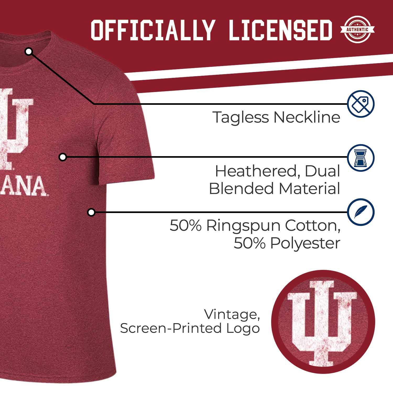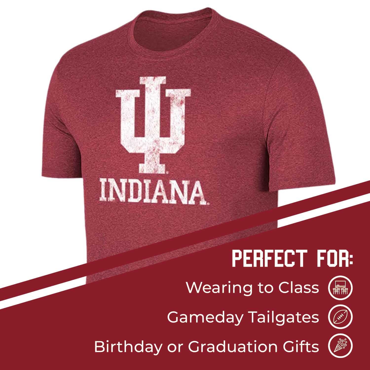 Support your Hoosiers through another successful season while sporting this must-have shirt! Your dedication will be on full display when you wear the Indiana Hoosiers NCAA Adult MVP Heathered Logo T-Shirt! This heathered t-shirt features official team colors as well as your favorite team name and logo! The screen printed graphics are displayed in a vintage style that gives you the look of a loyal and seasoned fan. Made from a dual blend of ringspun cotton and polyester, this super soft shirt will have you staying comfortable all day long! Wear it at the next tailgate or big game, or even while you watch your team win from home! Perfect for yourself or that next birthday, Christmas, or graduation gift you need to find! Never let your Hoosiers fandom be questioned again, get this shirt today!