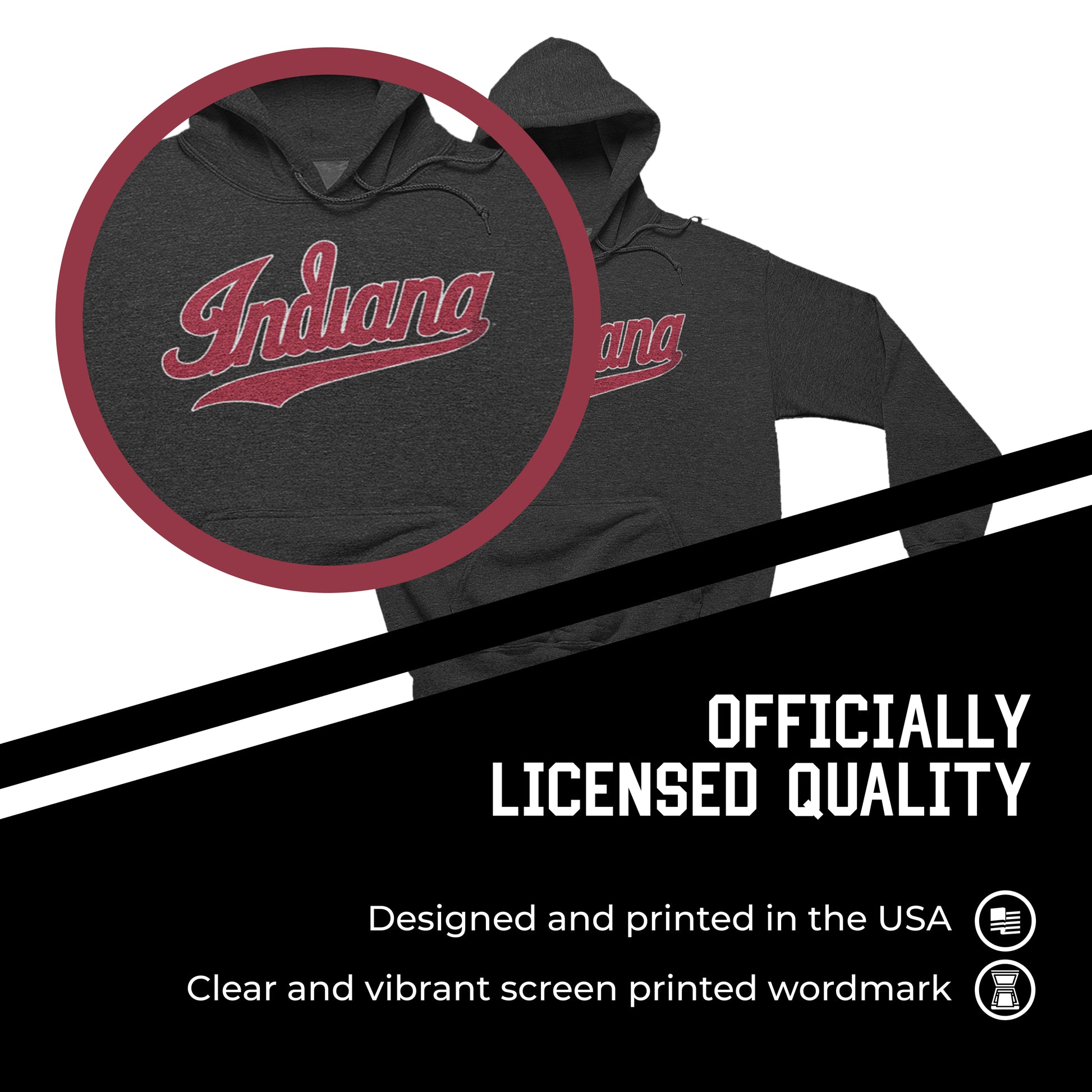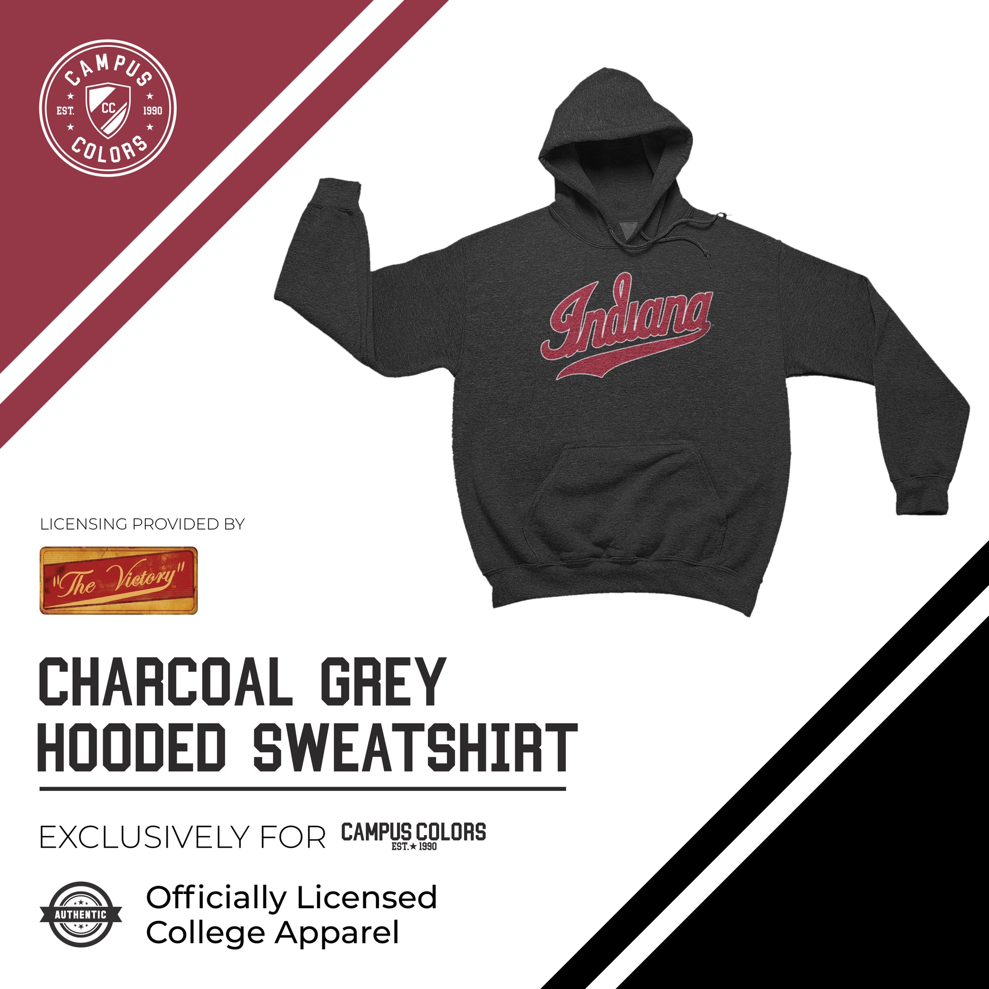 Indiana Hoosiers NCAA Adult Cotton Blend Charcoal Hooded Sweatshirt - Charcoal