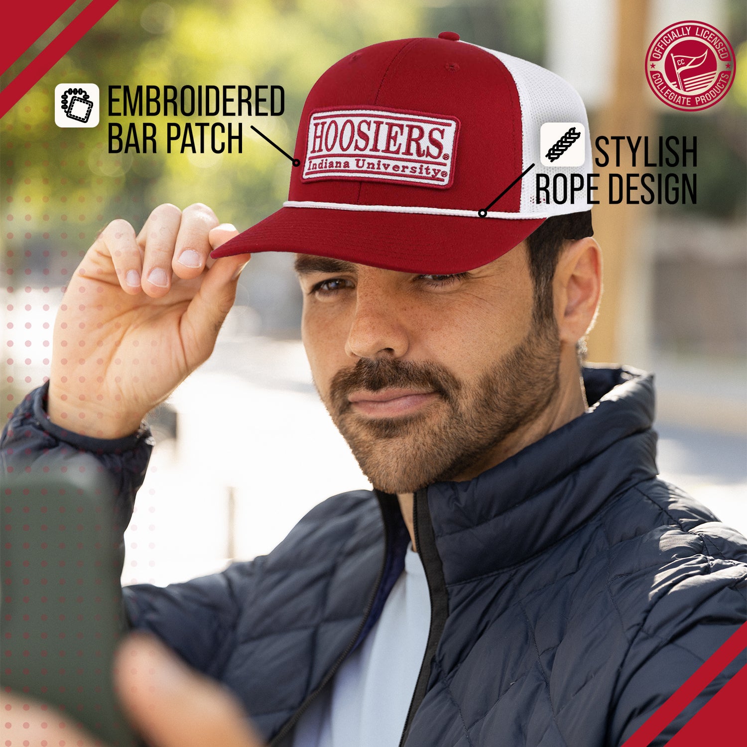 Elevate Your hat game with this Indiana Hoosiers Elite Everyday Trucker Hat! Whether you're heading to a game, running errands, or just having a casual day out, our Hoosiers trucker hat is the perfect accessory. Made with soft and breathable mesh material, this cap will keep your head cool and comfortable all day long. The one size fits most and adjustable snapback closure ensures a secure and cozy fit for both men and women. But it's not just about style - our hat also features a performance sweatband that wicks away moisture to keep you dry during any activity. And with its custom embroidered patch and rope detail showcasing your favorite NCAA team, you can proudly represent them wherever you go. With its versatile design and friendly fit, our everyday trucker hat is suitable for any occasion. So why settle for ordinary hats when you can upgrade to this rope trucker hat? Grab yours now and show off your team spirit in style!