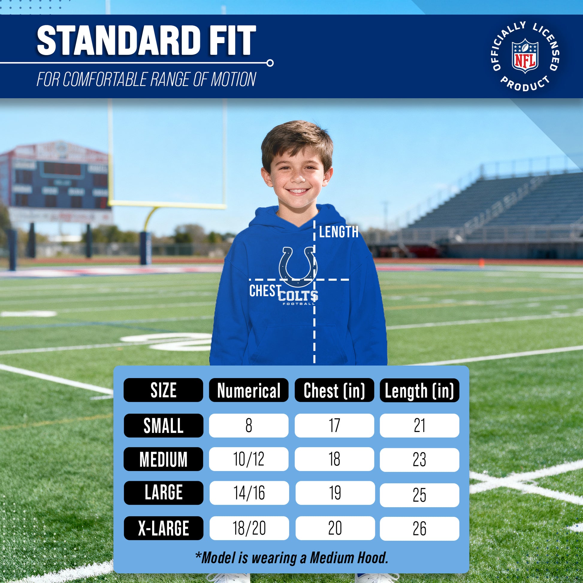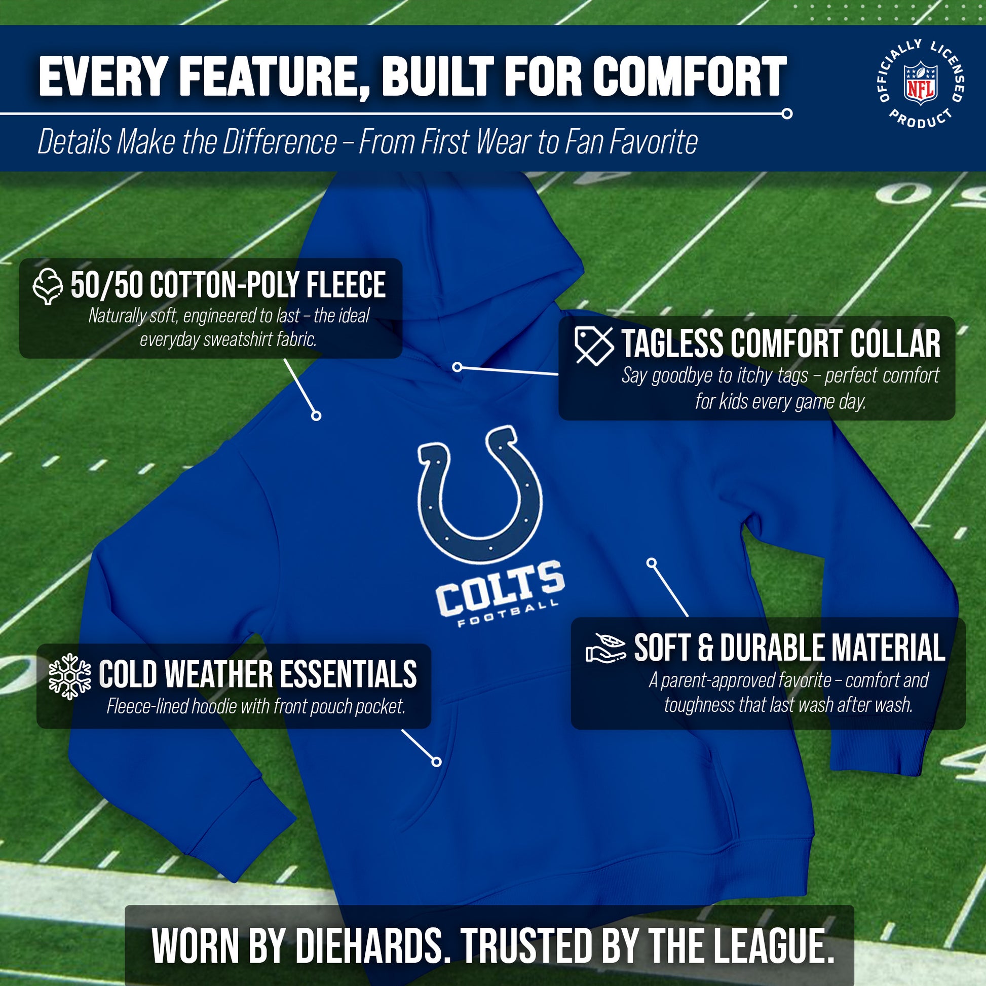 Indianapolis Colts Youth NFL Ultimate Fan Logo Fleece Hooded Sweatshirt -Tagless Football Pullover For Kids - Royal